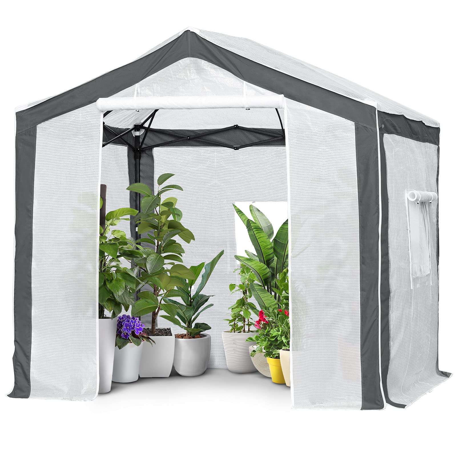 EAGLE PEAK 8x8 Portable Walk in Greenhouse with Polyester Reinforced Corners, Heavy Duty Instant Pop Up Indoor Outdoor Green House, Front Roll Up Zipper Entry Door and Mesh Windows, Gray/White