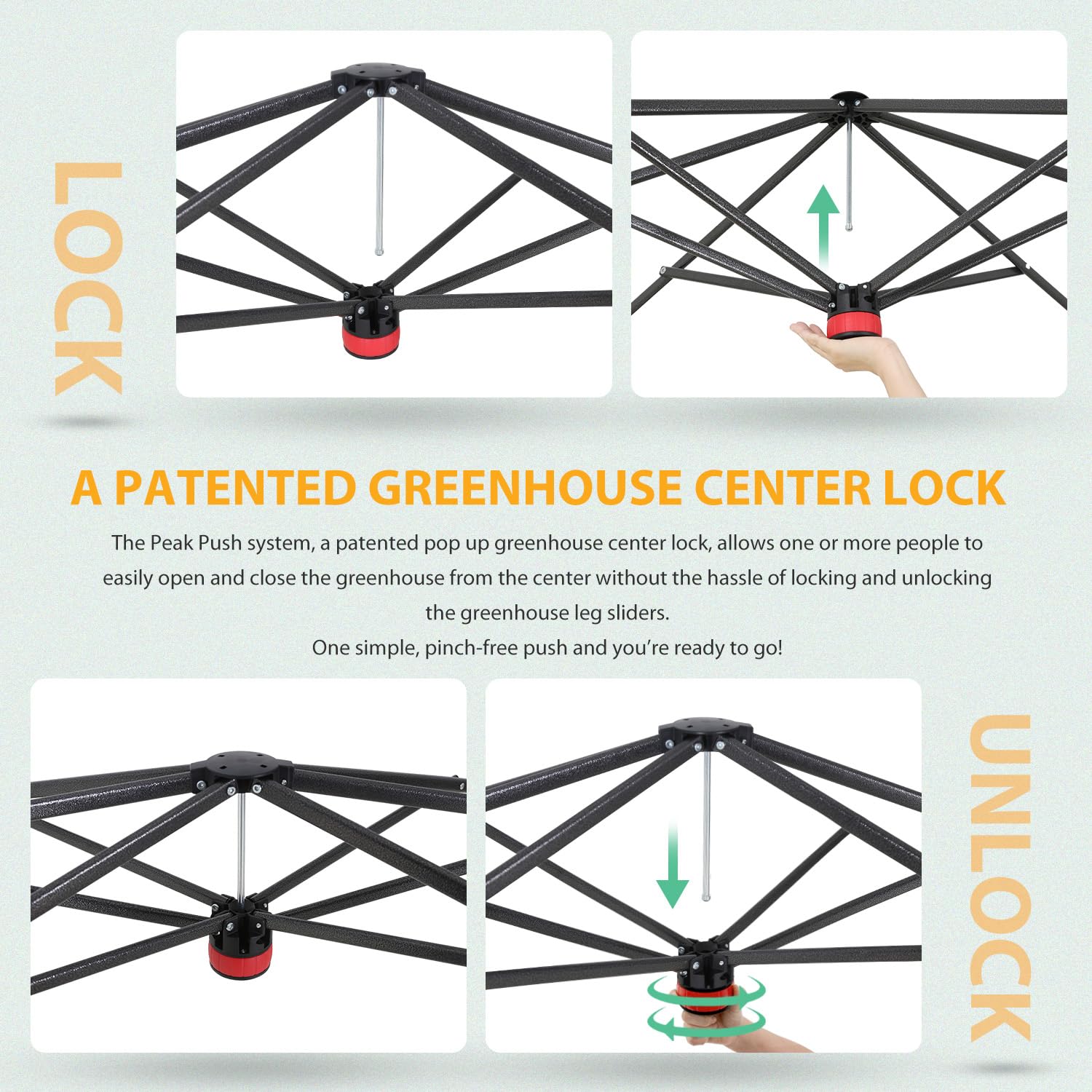 EASY SETUP: This pop up greenhouse with patented center lock technology supports one person setup in seconds. The pre-assembled frame and innovative Peak Push locking system delivers a quick setup. No tools required. Whether you're a seasoned gardener or just starting out, the EAGLE PEAK pop-up greenhouse for outdoors saves you time and hassle