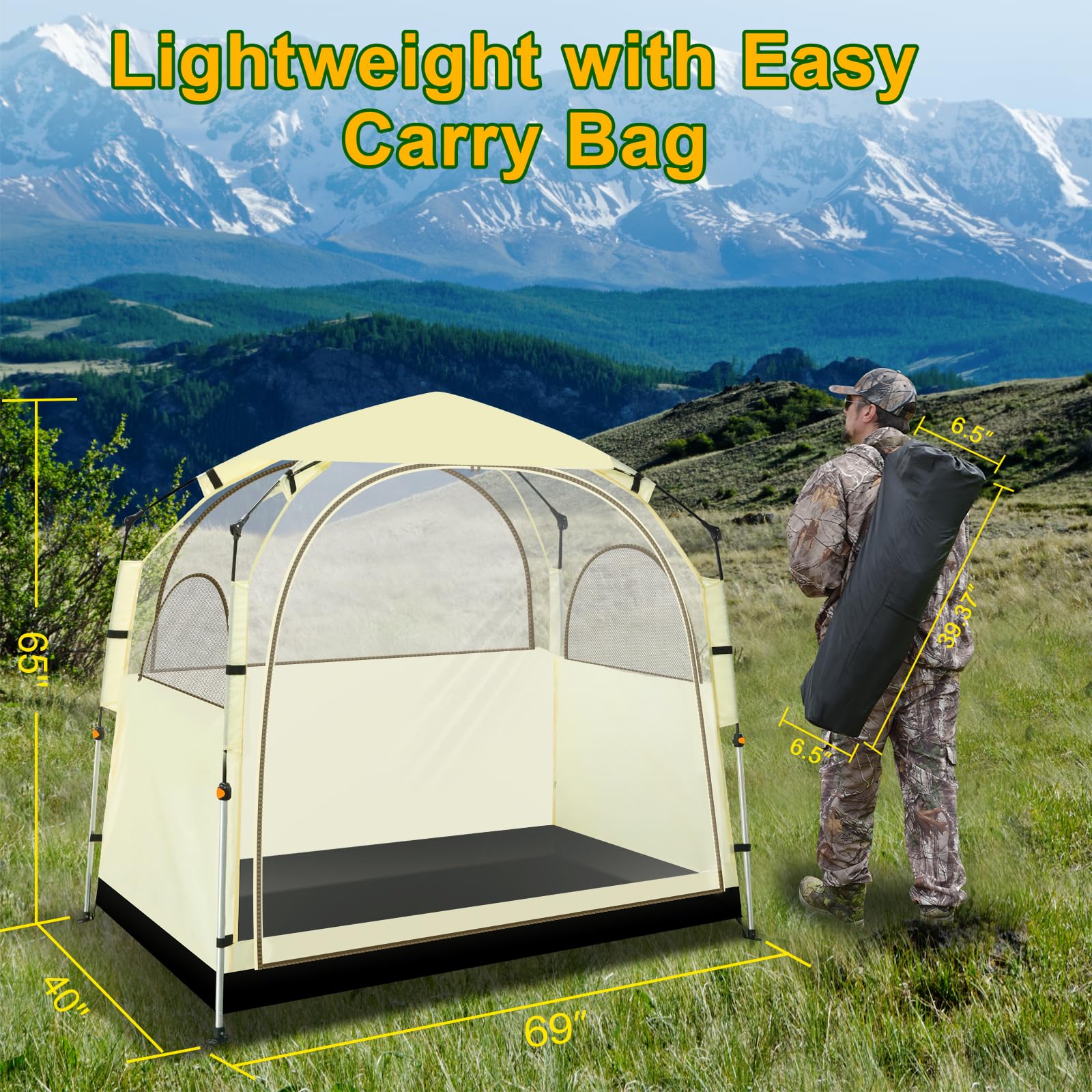 The Eapele sport tent features a sturdy frame and durable PVC material, with an instant automatic setup design for quick assembly. To prevent frame damage, avoid forcing the poles during setup or folding—gently guide them into place. Includes a 33.27-inch carry bag for portability
