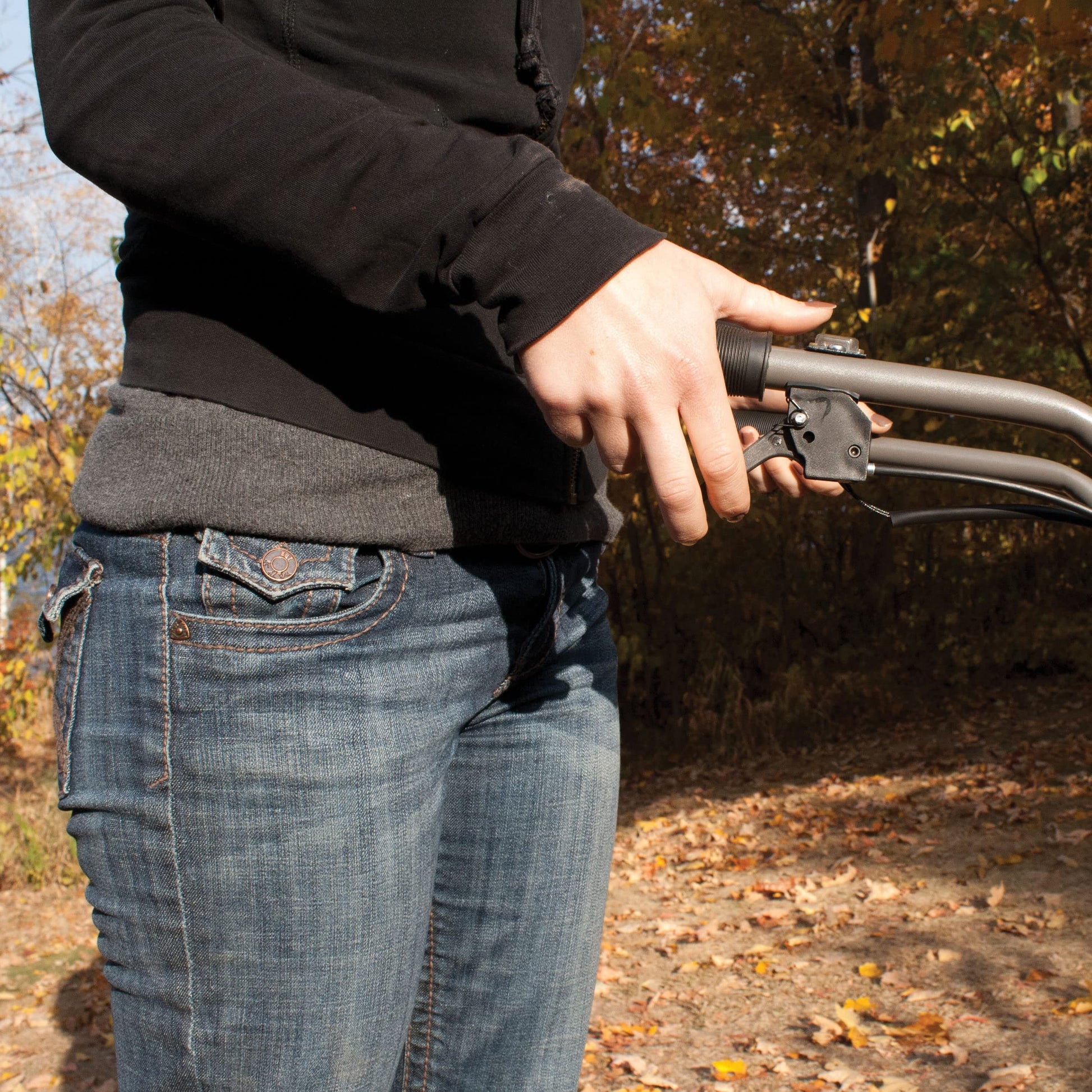 • STAND-UP STARTING: Start and stop comfortably from behind the handlebars without bending over.