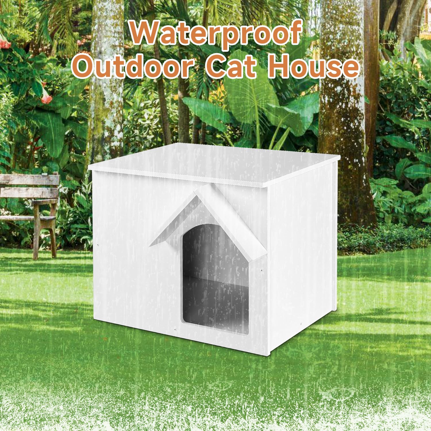 Waterproof and Insulated: Made of 10MM wood plastic board, this outdoor cat house is designed to withstand heavy snow in winter without collapsing. Its waterproof feature ensures that your furry friends stay dry and comfortable even during rainy days.