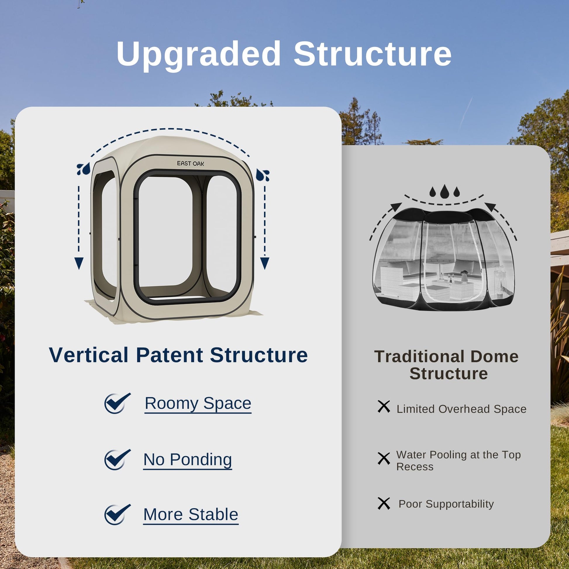 ๐๐๐ด๐-๐ฃ๐ฟ๐ผ๐ผ๐ณ ๏ผ ๐ฉ๐ฒ๐ป๐๐ถ๐น๐ฎ๐๐ฒ๐ฑ ๐ฆ๐ฝ๐ฎ๐ฐ๐ฒ : The EAST OAK portable pop-up screen tent features a 4-sided B3 fine mesh design for 360ยฐ perfect ventilation and can protect you from mosquitoes or other bugs. The tent body is made of high-quality Oxford fabric coated with silver to achieve all-day UPF 50+ UV resistance. Ideal for creating a comfortable and protected resting space during various outdoor activities (picnics, camping)