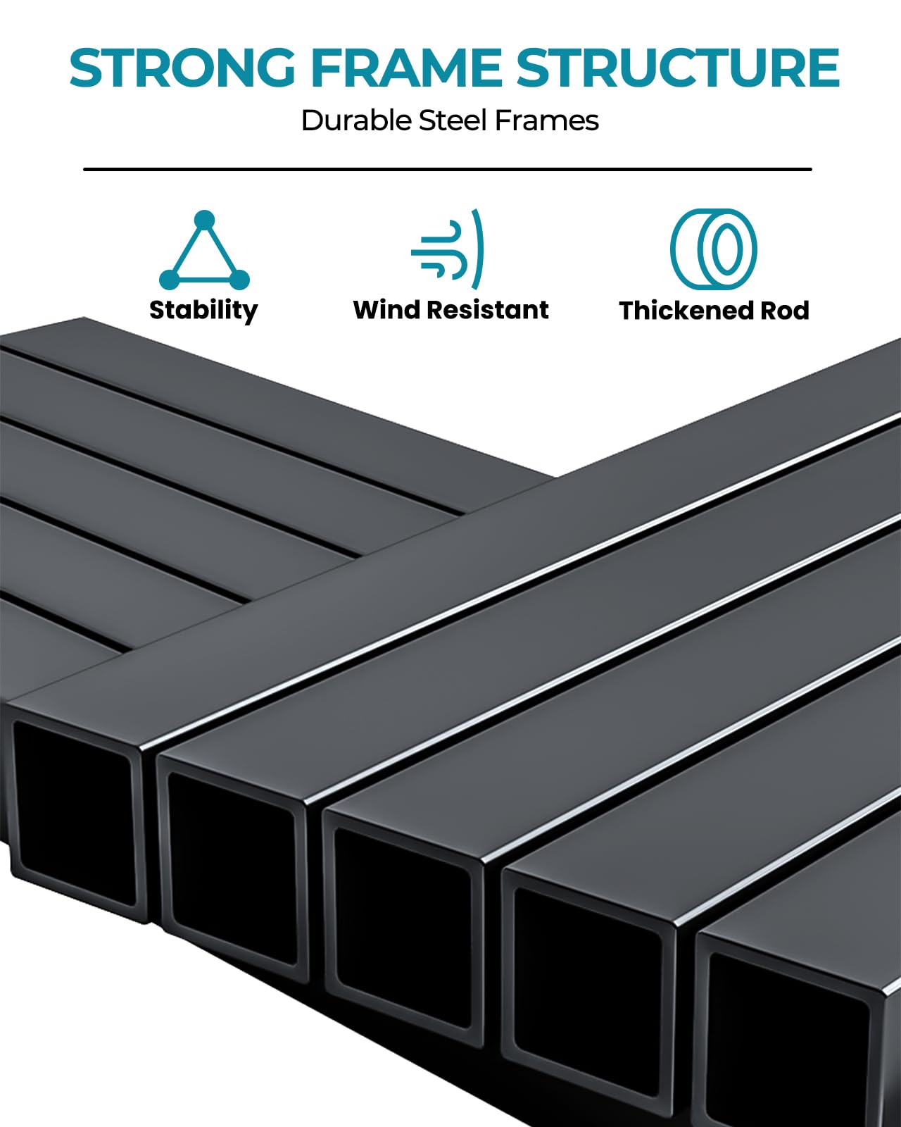 300D Fabric–100% Waterproof, UPF 50+, Windproof: 10x10 canopy tent features 300D Oxford fabric with high tear resistance for long-lasting use. Its 5000mm+ waterproof rating outperforms standard tents (1500-2000mm), handling heavy rain. UPF 50+ blocks 99% of UV rays, while the PU coating enhances light transmission and wind resistance