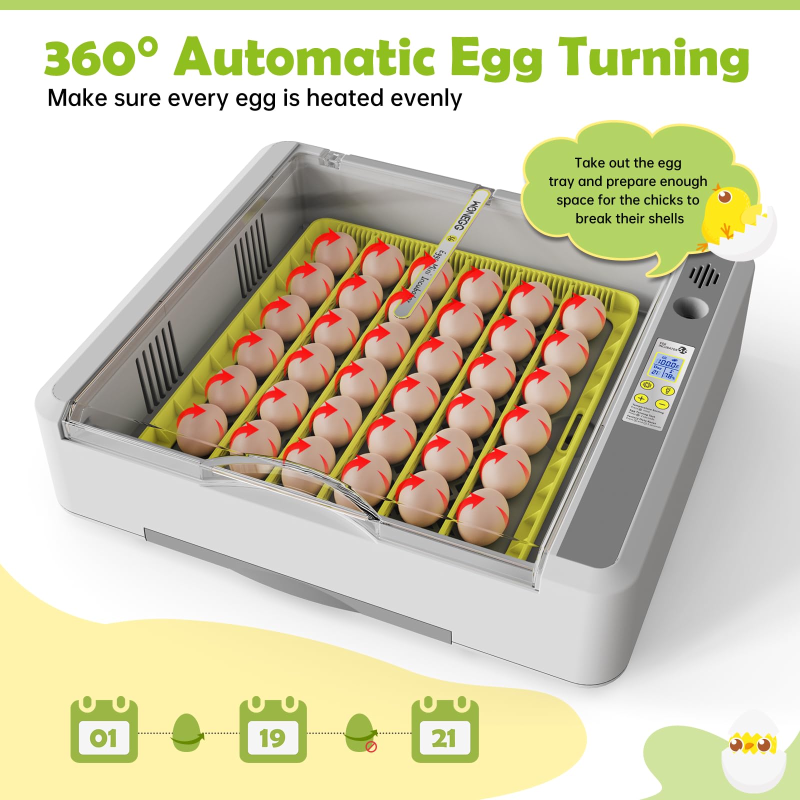 Egg Incubator for Hatching Chicks, 36 Eggs Automatic Turner with Temperature & Humidity Control, Multifunctional Ultra-Clear Panoramic View with Hatch Days & Egg Candler for Chicken, Duck, Goose, Bird