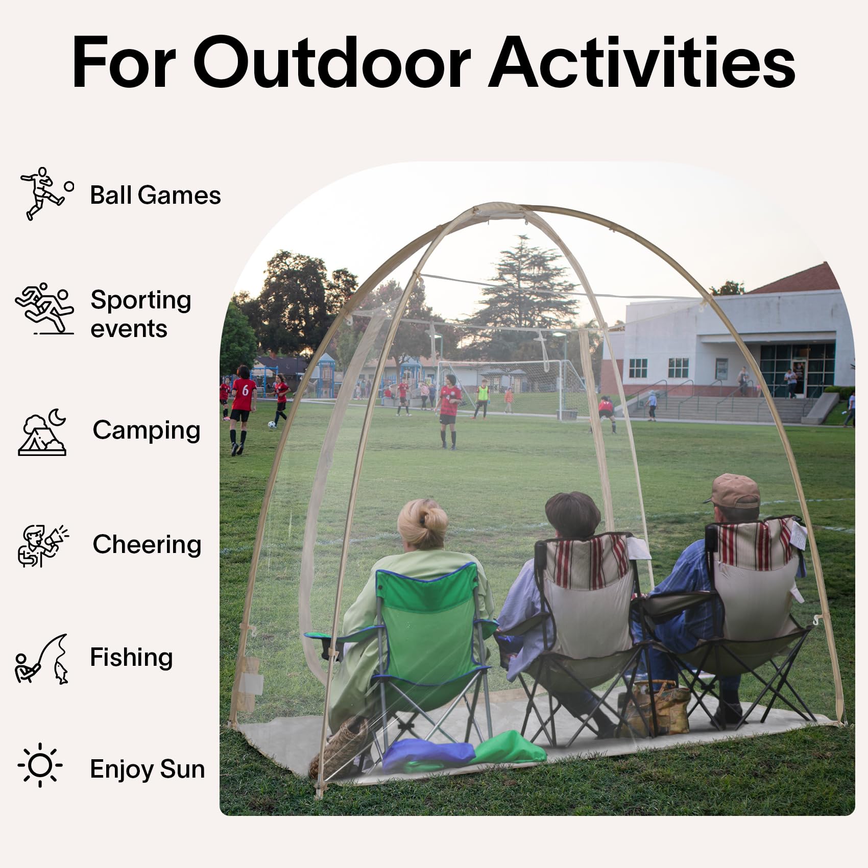 VERSATILE FOR A WIDE RANGE OF OUTDOOR VENTURES: Instant auto set-up structure frame tent is perfect for watching sports like football, baseball, soccer, lacrosse, or engaging in hobbies such as fishing, photography, outdoor open-air movies. Keep your family and friends warm and clean while cheering on your team. Fully transparent roof allows for night stargazing and enjoying the beautiful scenery. Create cherished memories in your garden, backyard, camping trips, by the swimming pool, etc.
