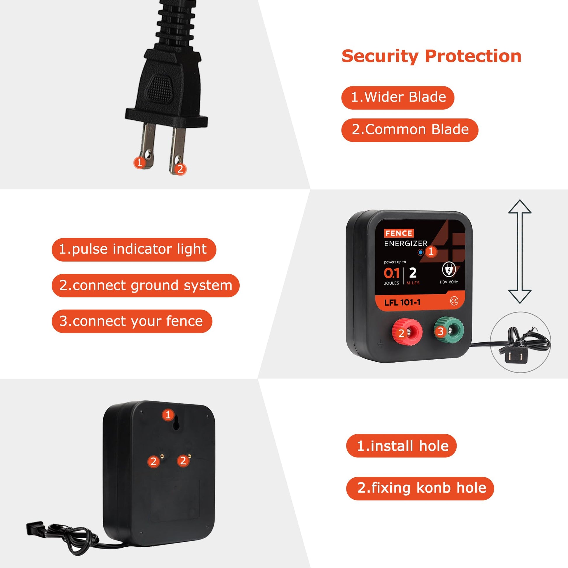 Protect Your Farm: This electric fence controller is a pulse exciter suitable for controlling small animals. The electric shock will not hurt them, but will keep them away from your garden or chicken coop. It can protect livestock or crops in the fence and prevent the invasion of wild animals such as foxes, skunks, raccoons, etc