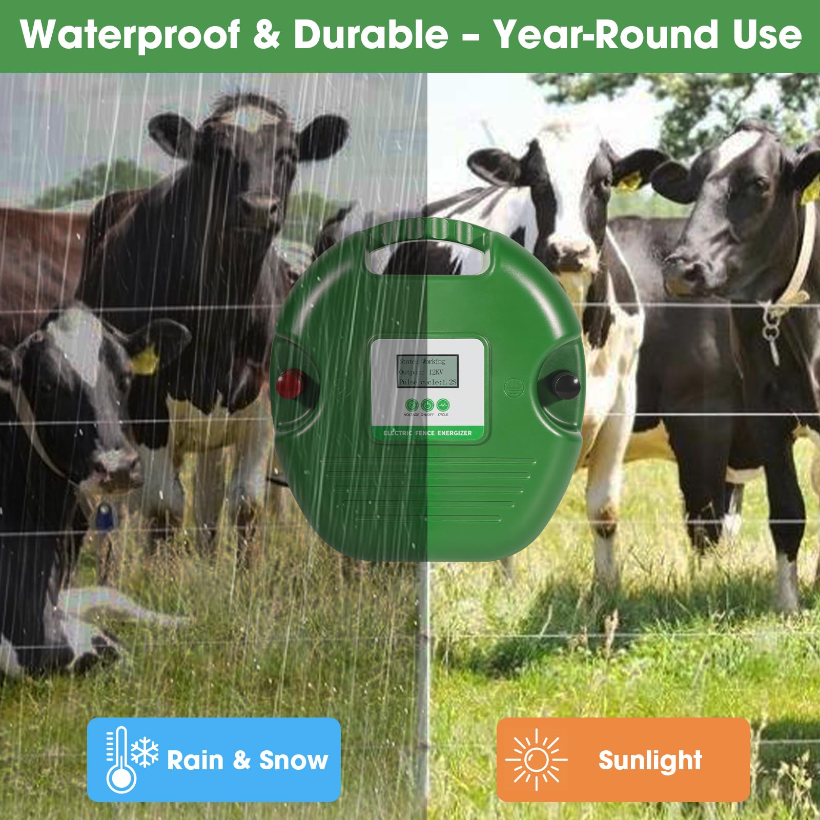 🌧️ Durable & Waterproof – Year-Round Protection Designed to endure tough conditions, this electric fencer features a rugged, weather-resistant case. Operates reliably in rain, snow, or sun — ideal for large, outdoor installations.