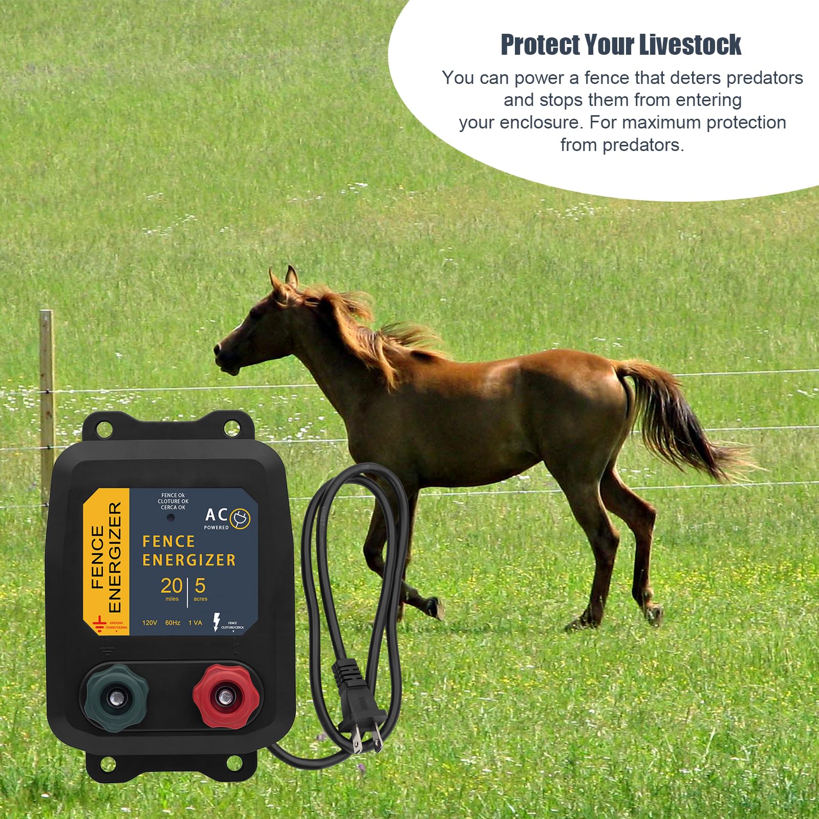 ๐๐จ๐ฐ๐๐ซ๐๐ฎ๐ฅ ๐๐ซ๐จ๐ญ๐๐๐ญ๐ข๐จ๐ง ๐๐จ๐ซ ๐๐จ๐ฎ๐ซ ๐๐ซ๐จ๐ฉ๐๐ซ๐ญ๐ฒ: The Electric Fence Energizer is designed to deliver reliable performance over an impressive range of 5 miles or 20 acres. This AC-powered, plug-in charger operates at 110 volts and provides an output of 0.2 Joules, ensuring effective deterrence against common intruders such as raccoons, skunks, and squirrels.