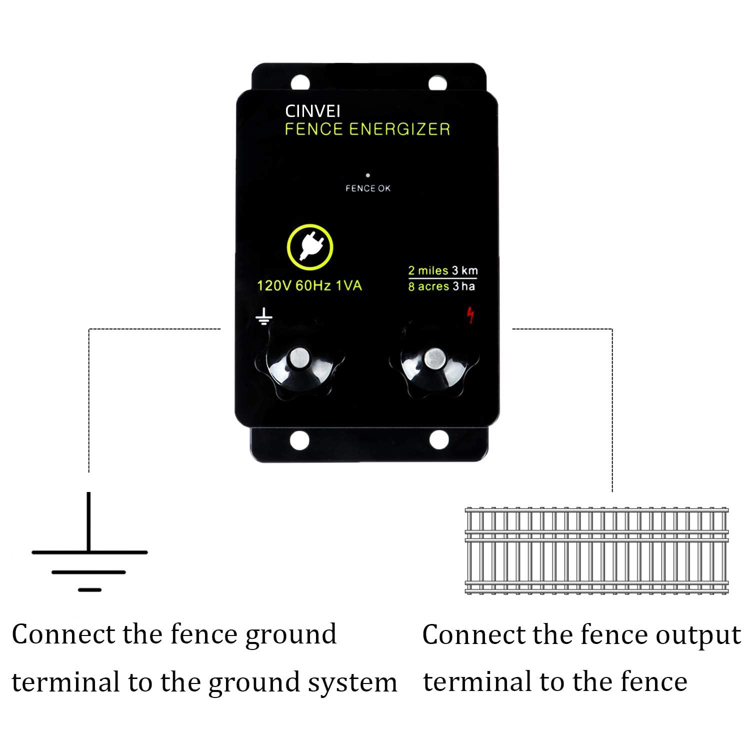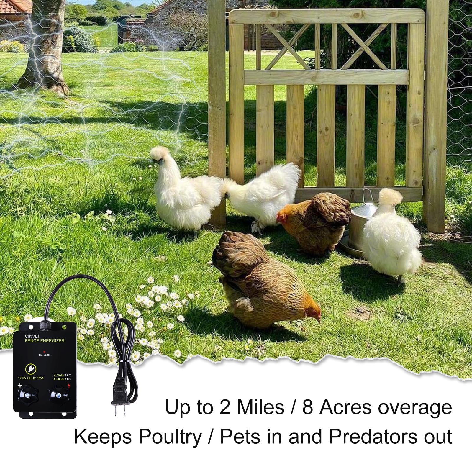 Electric Fence Energizer for Preventing Wild Animals Intruding, CINVEI 2-Mile Electric Fence Energizer for Preventing Wild Animals Intruding 8 Acres Output Voltage 5000V, 0.1 Joule