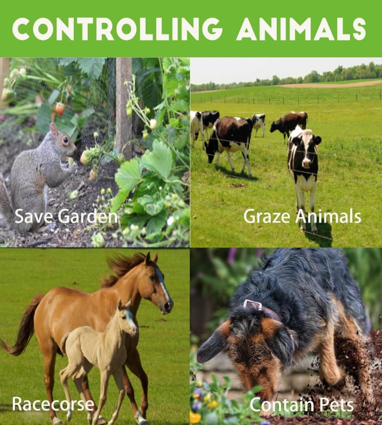 • Perfect electric fence set for controlling horses, pigs, cows and exotic animals, helps keep out rabbits, skunks, woodchucks and raccoons
