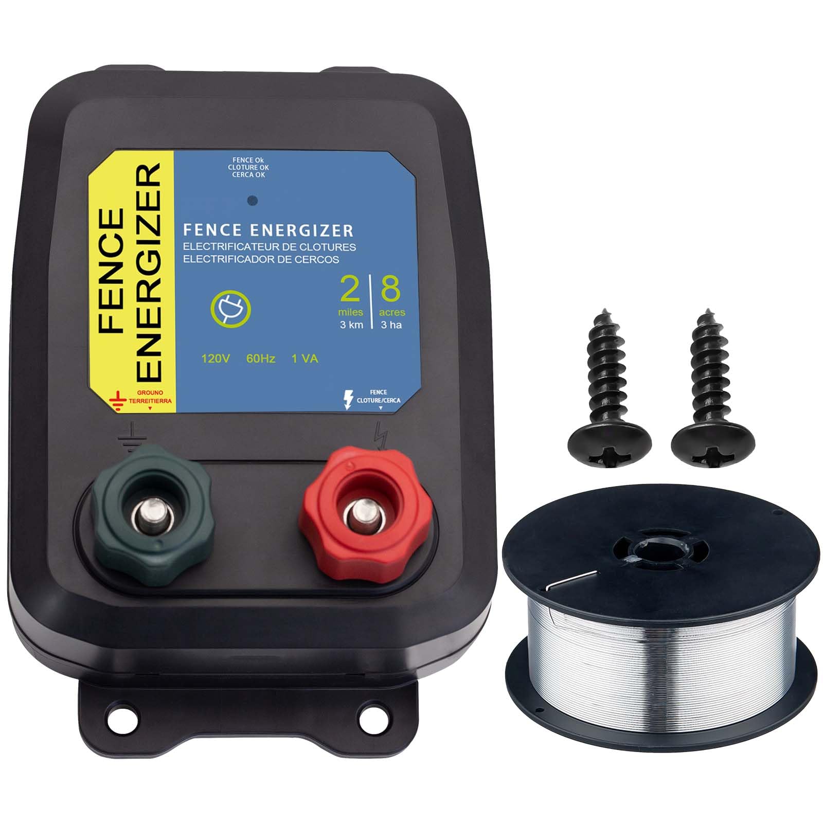 Electric Fence Energizer Plus 250,Electric Fence Charger and 17 Gauge Spool Aluminum Wire PE2 0.10 Joule,Livestock Fence Chargers for Containing Pets and Keeping Out Small Nuisance Animals