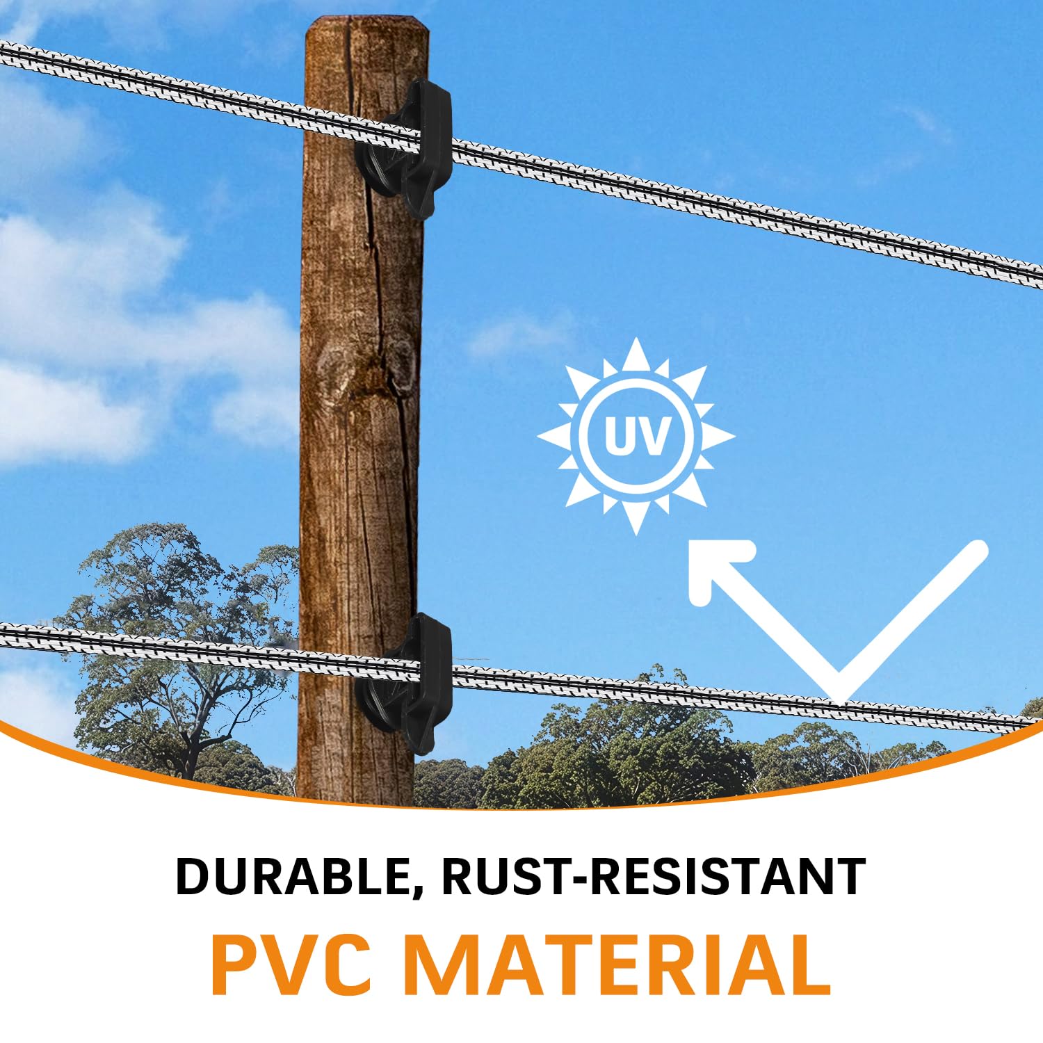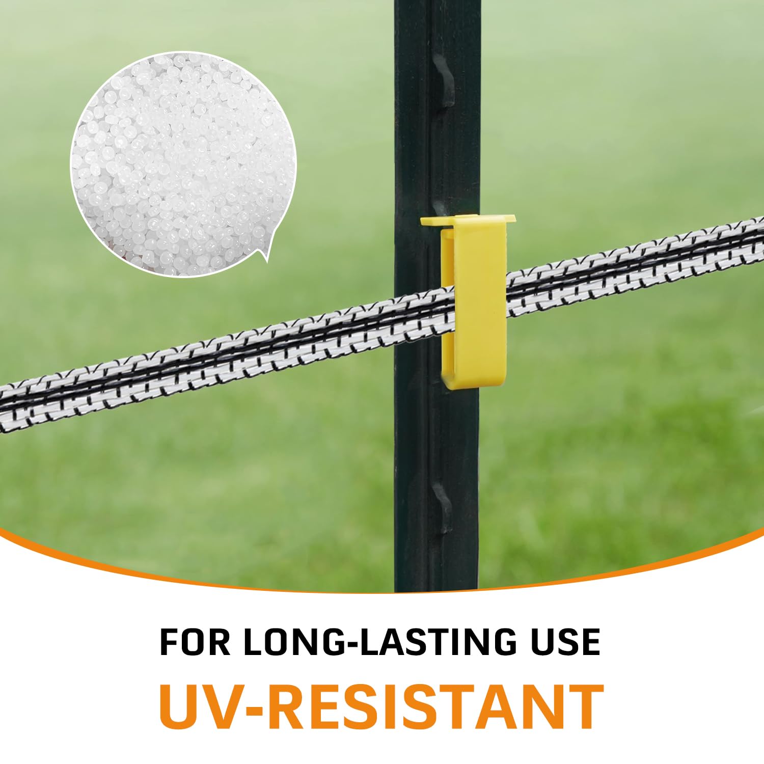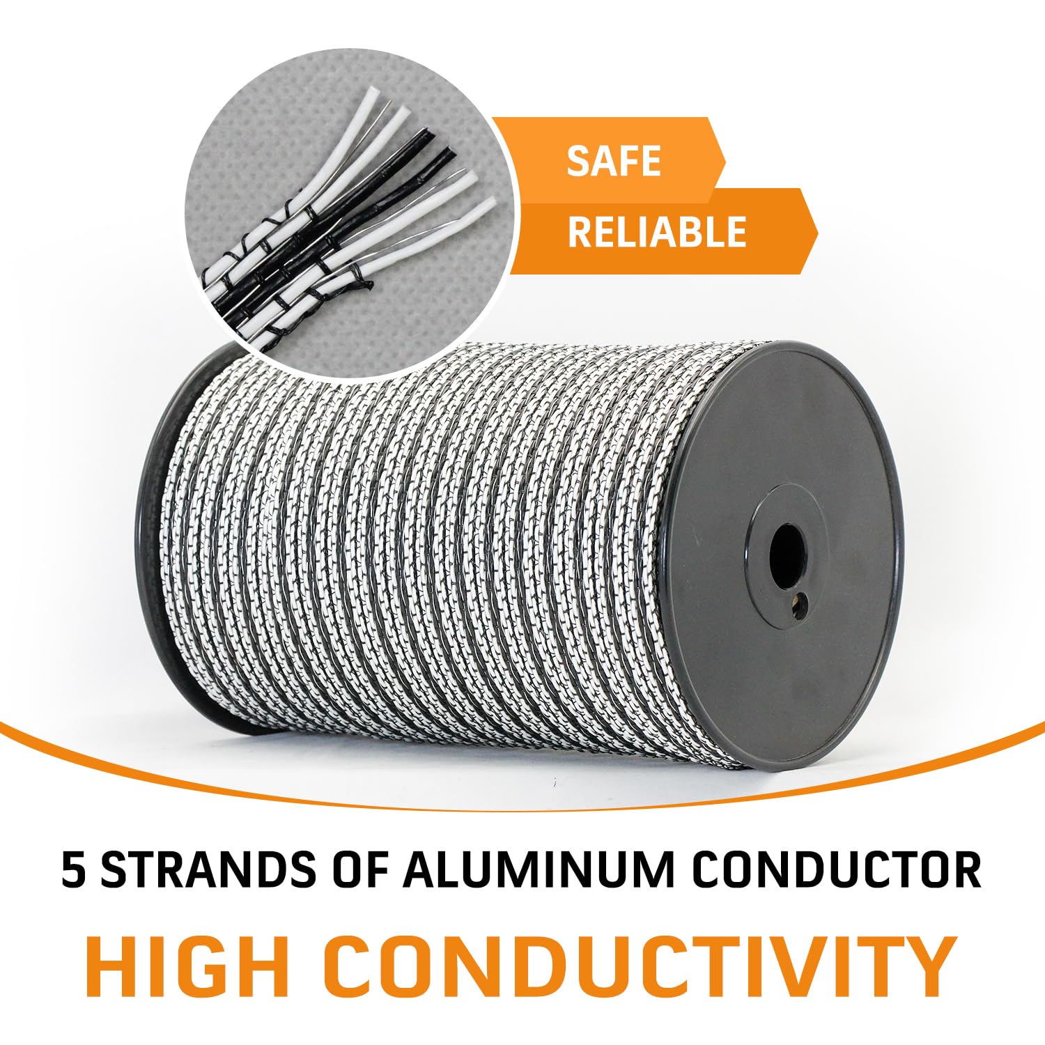 This heavy duty electric fence tape features PVC-coated high-density fiberglass for UV protection, which will not rust and is not easy to break, creating a fence that's built to last. That it will last out on the farm through continuous years using