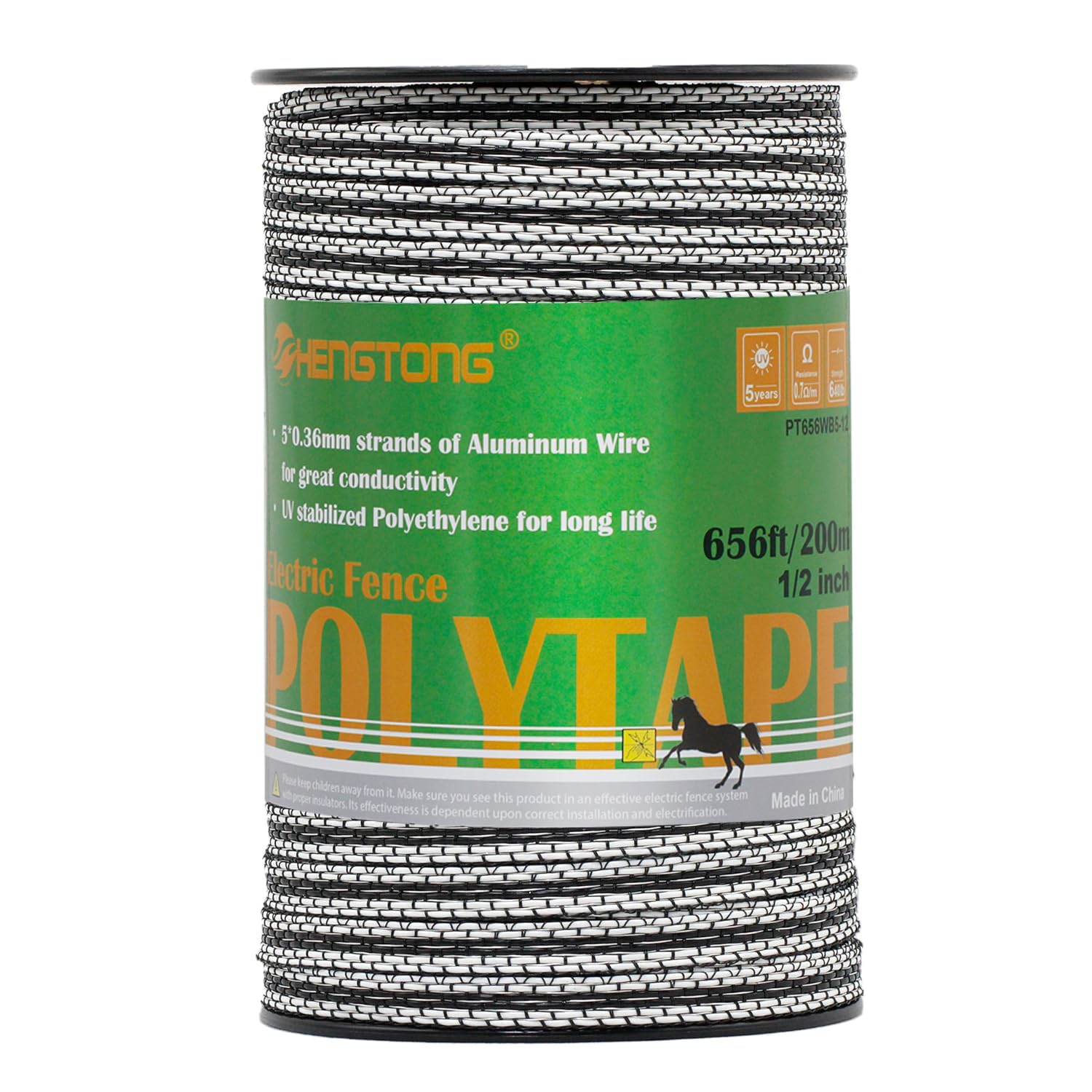 This electric fence tape measures 1/2" in width and comes in a roll length of 656ft/200m, withstanding up to 640 lbs of tension. The high-tensile design ensures stability and safety, making it perfect for temporary pastures and rotational grazing