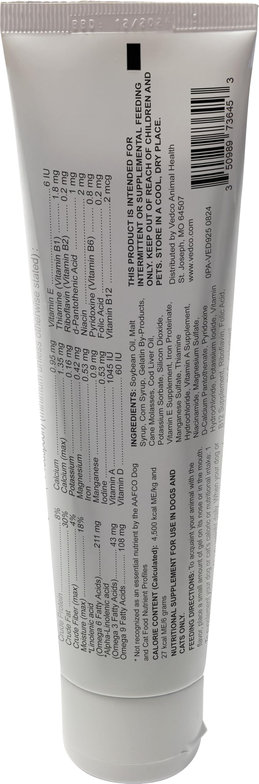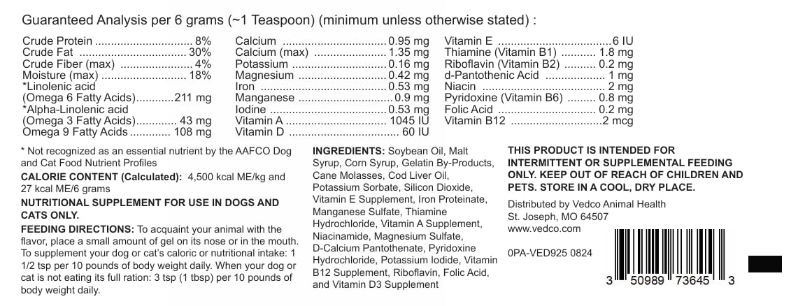- NUTRITIONAL SUPPLEMENT: Oral gel supplement that provides concentrated vitamins, minerals, and omega fatty acids for dogs and cats of all ages.