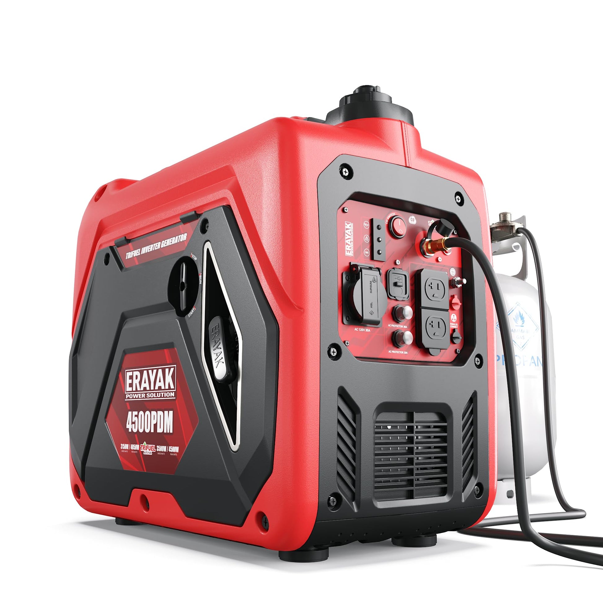 ERAYAK 4500W Dual-Fuel Portable Inverter Generator for Home Use, Camping Outdoor, 30A RV Ready, Auto Switch, Gas and Propane Powered, EPA, CO Sensor, Parallel Ready, Campact Design