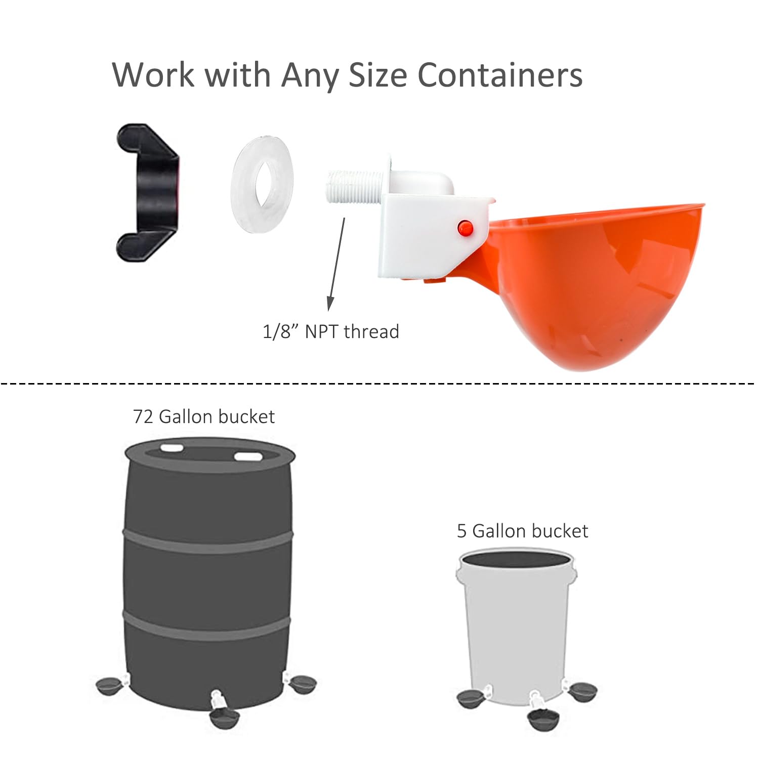 The chicken water feeder cups with 1/8” NPT thread could be installed on bucket, barrel, easy to DIY a poultry waterer system