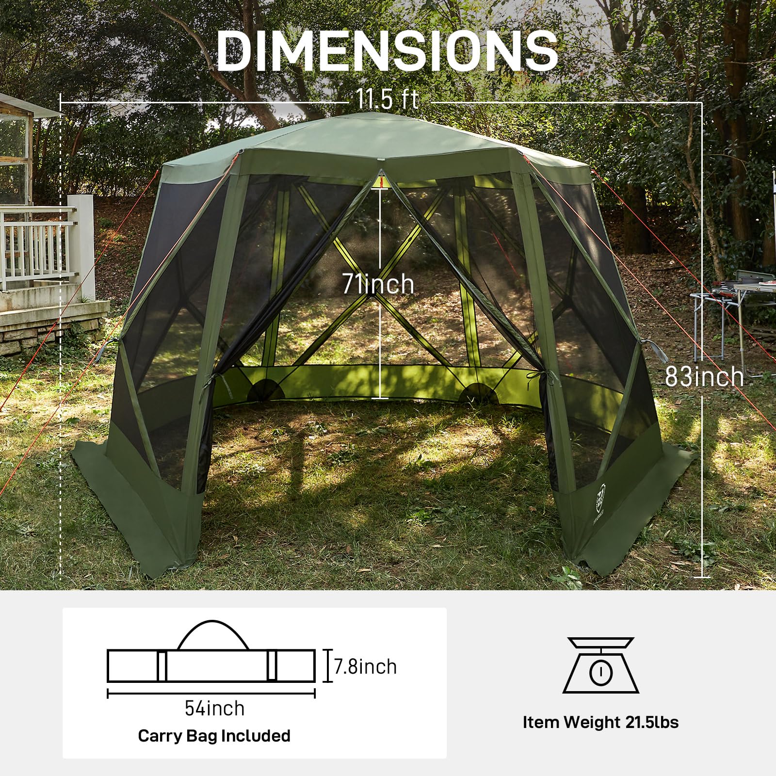 EVER ADVANCED Pop up Screen House Tent for Camping 11.5 x 9.8 ft, Instant Screened Gazebo Canopy with Netting, Portable Shelter Enclosure for Outdoor, Backyard