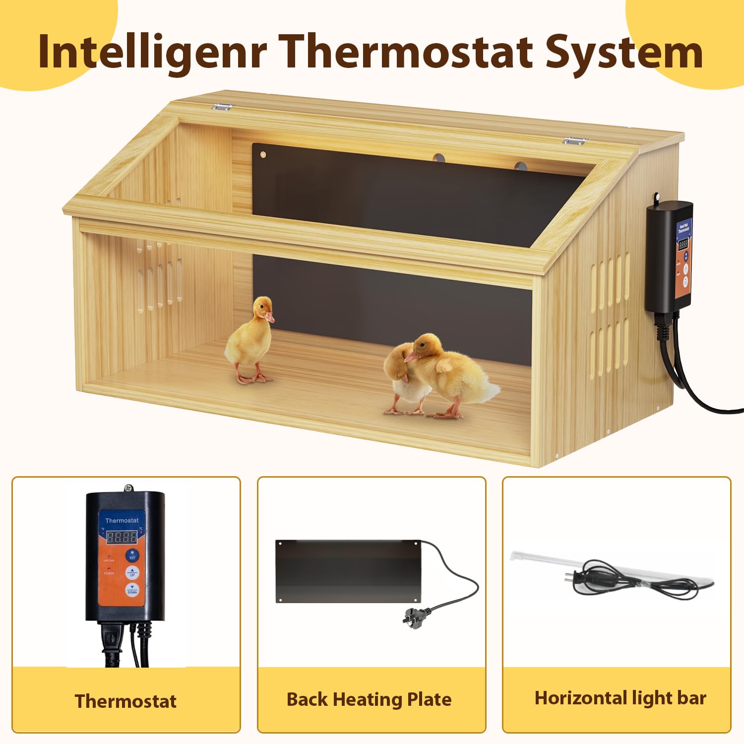 Safety and Security -- We have equipped the brooder box with an overheating protection device for your convenience in testing the circuit's functionality. We prioritize your shopping experience and aim to provide a warm and comfortable environment for your chicks, ducklings, quails and other small animals!