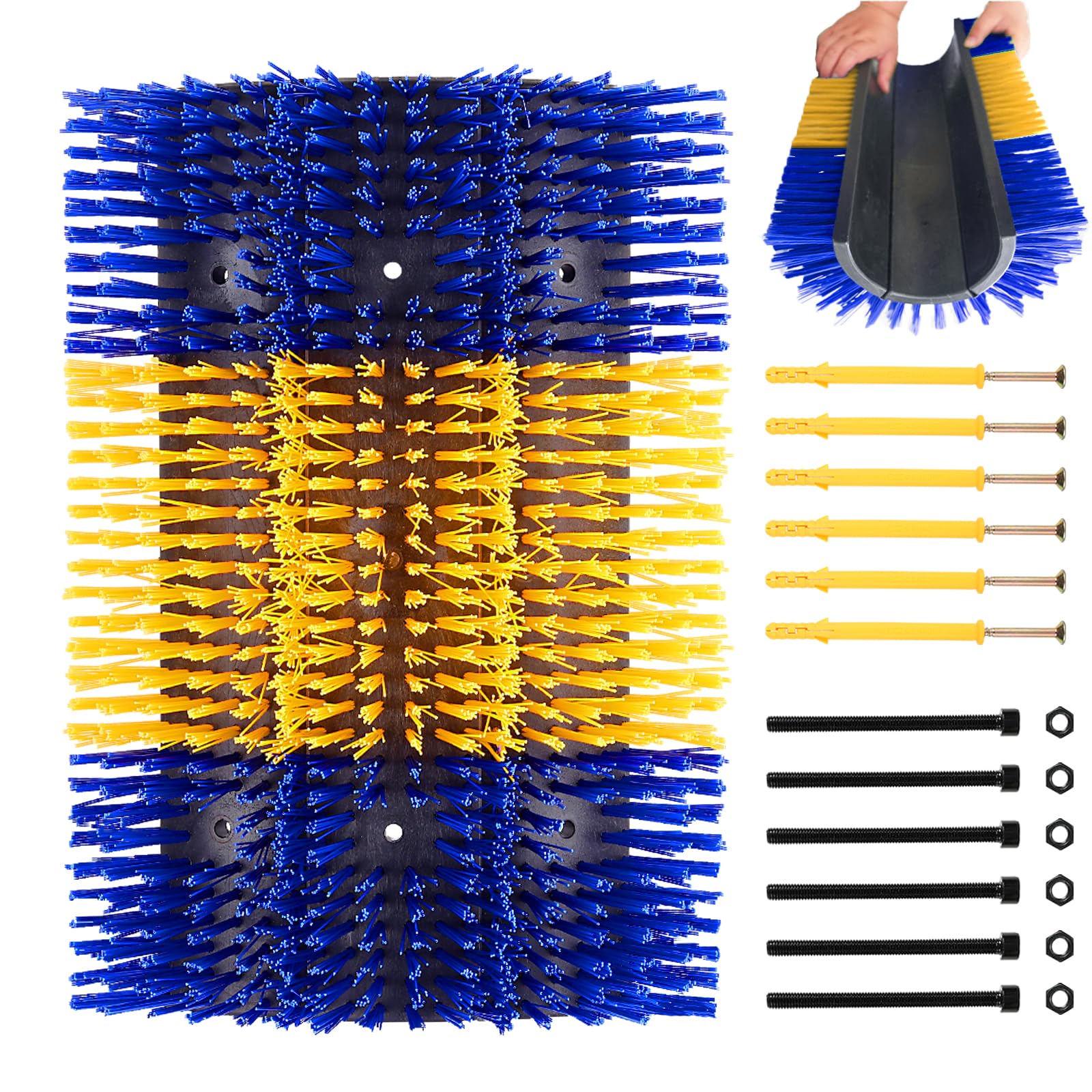 Extra Large Size Livestock Scratching Brush, Upgraded Horse/Goat/Cow/Cattle Scratcher Brush for Grooming, Itch Relief Horse Scratcher Brushes Kit with Two Sets of Mounting Screws(1-Pack,Yellow)