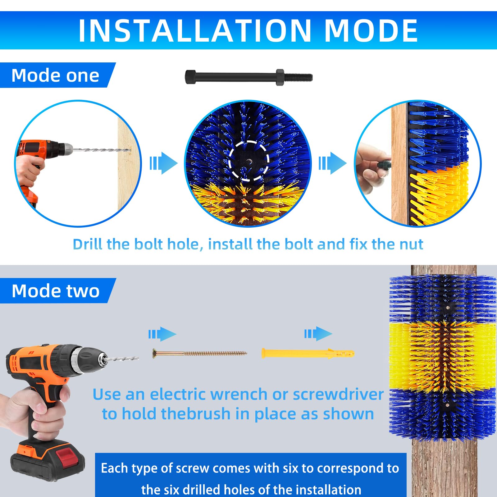 【Easy Installation】Our products feature a special upgraded design that allows them to be bent around a tree stump or fence post, or nailed flat to a fence or wall. Each product comes with two different sets of screws, each set of screws comes with 6 pieces to correspond to the 6 connection holes of the brush, which provides users with a wide range of installation options