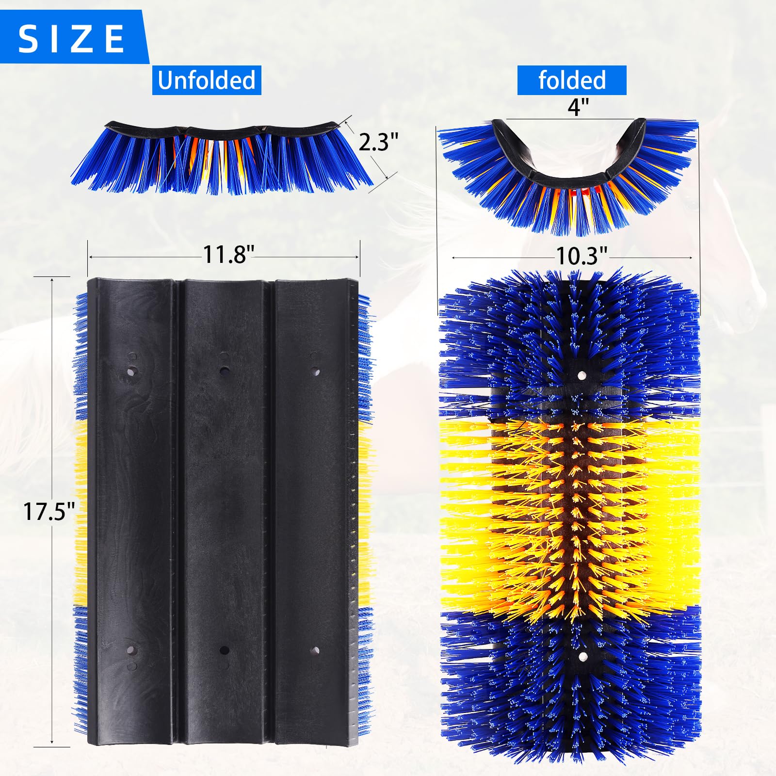 【Extra Large Size for Maximum Coverage】The expandable design allows the horse brush to have a larger and wider size. Our expandable horse scratcher brush measures 17.5 x 11.8 inches, which is suitable for most animals such as cattle, horses, sheep, cows, pigs, deer, and donkeys. It is a good helper for grooming livestock