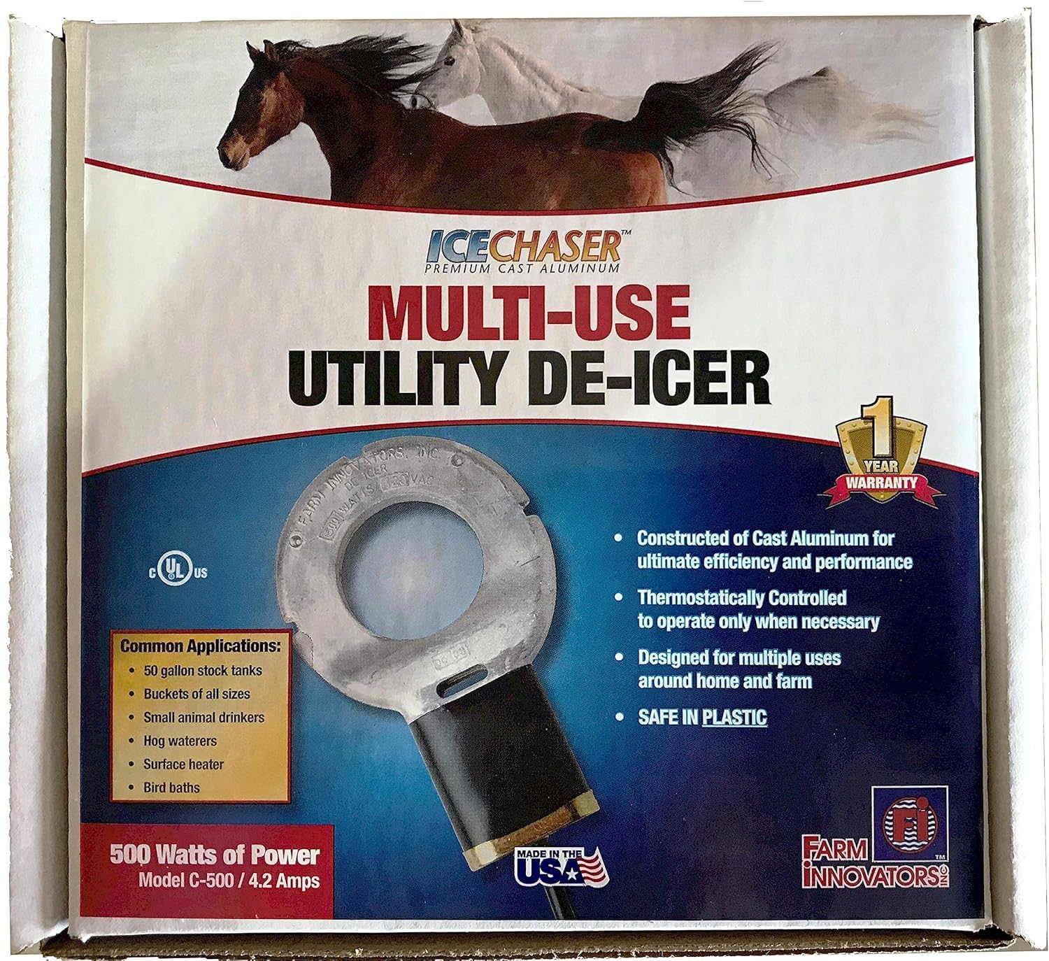Farm Innovators C-500 Submergible Cast Aluminum Utility Water De-Icer, Powered at 500 Watts with 50 Gallon Capacity for Versatile Farm Use
