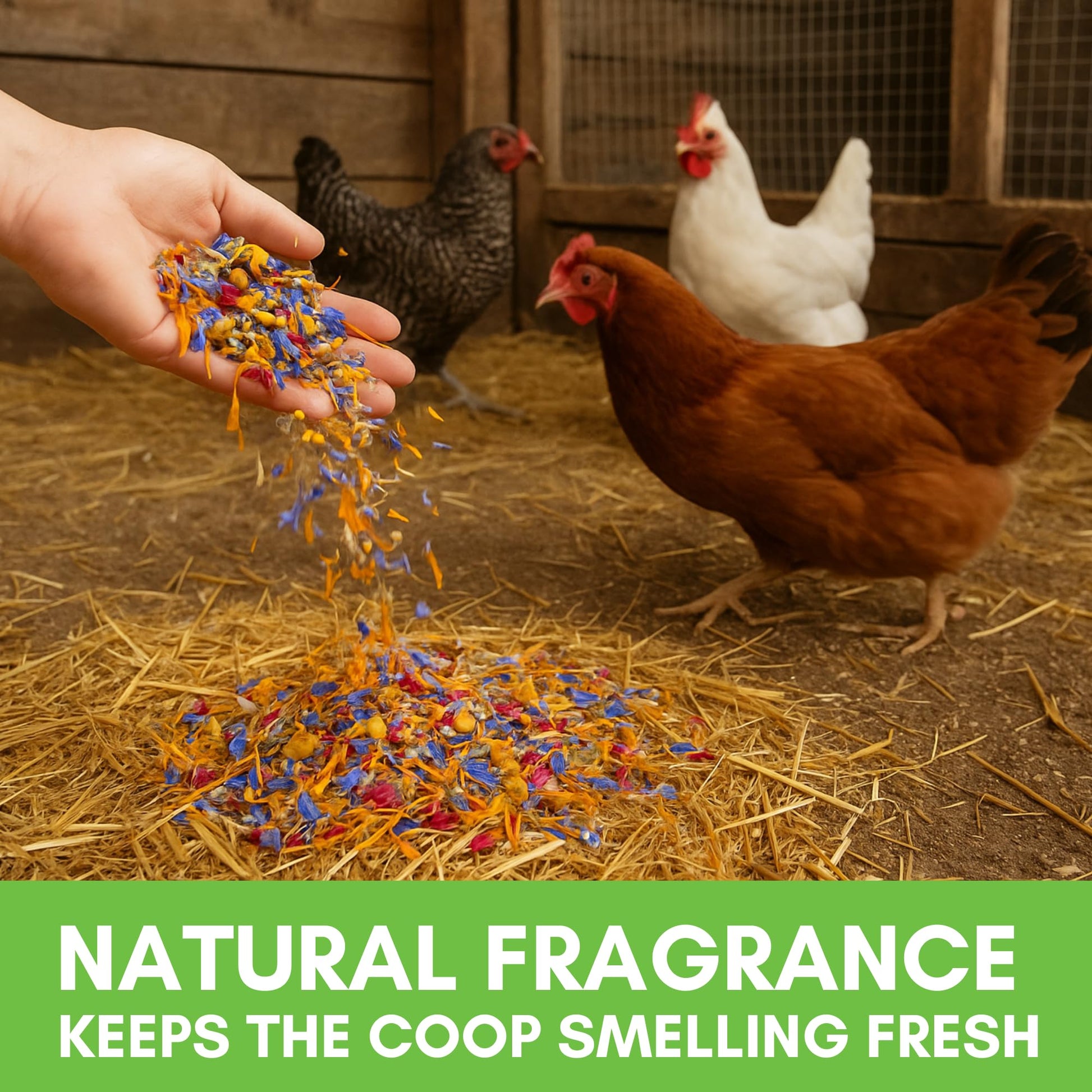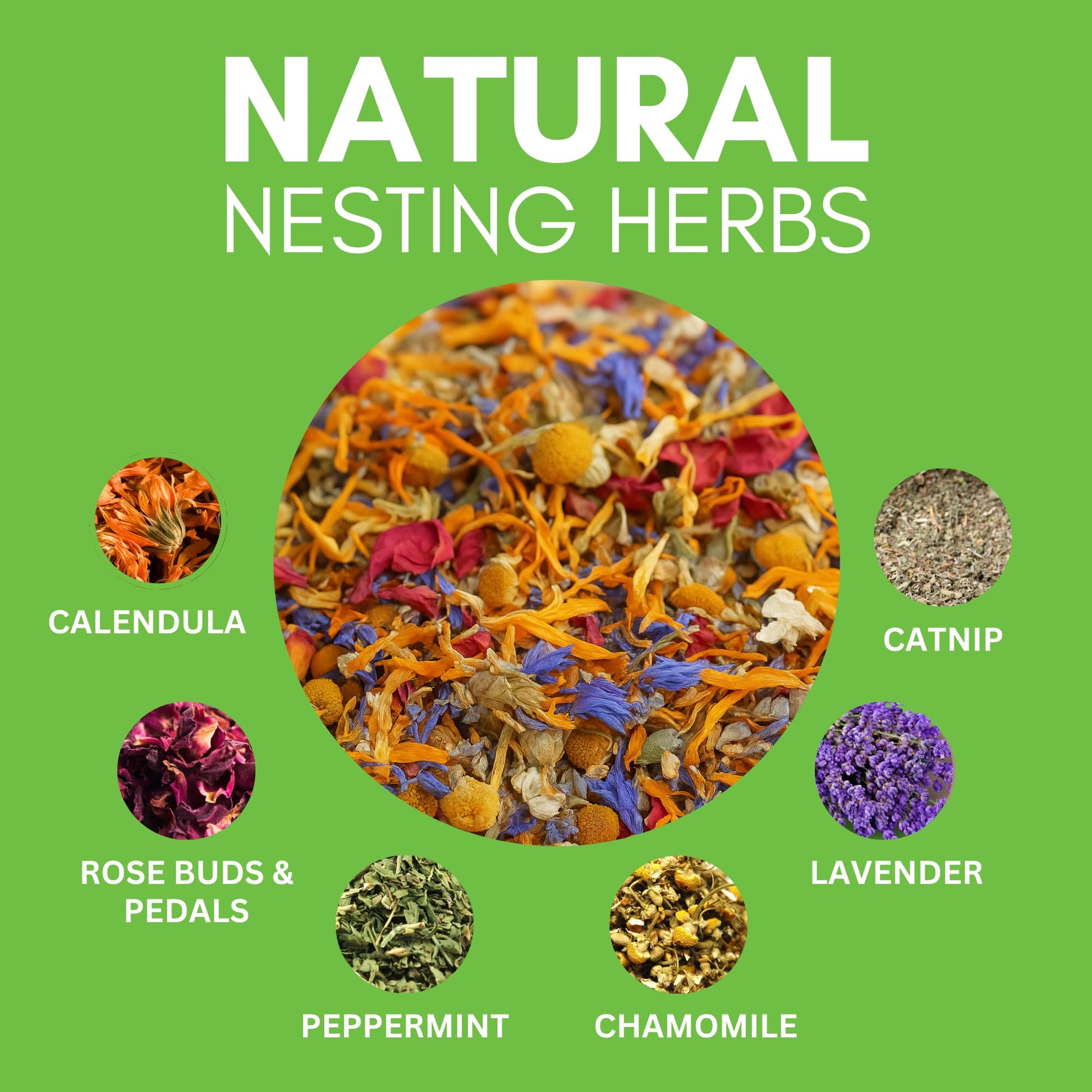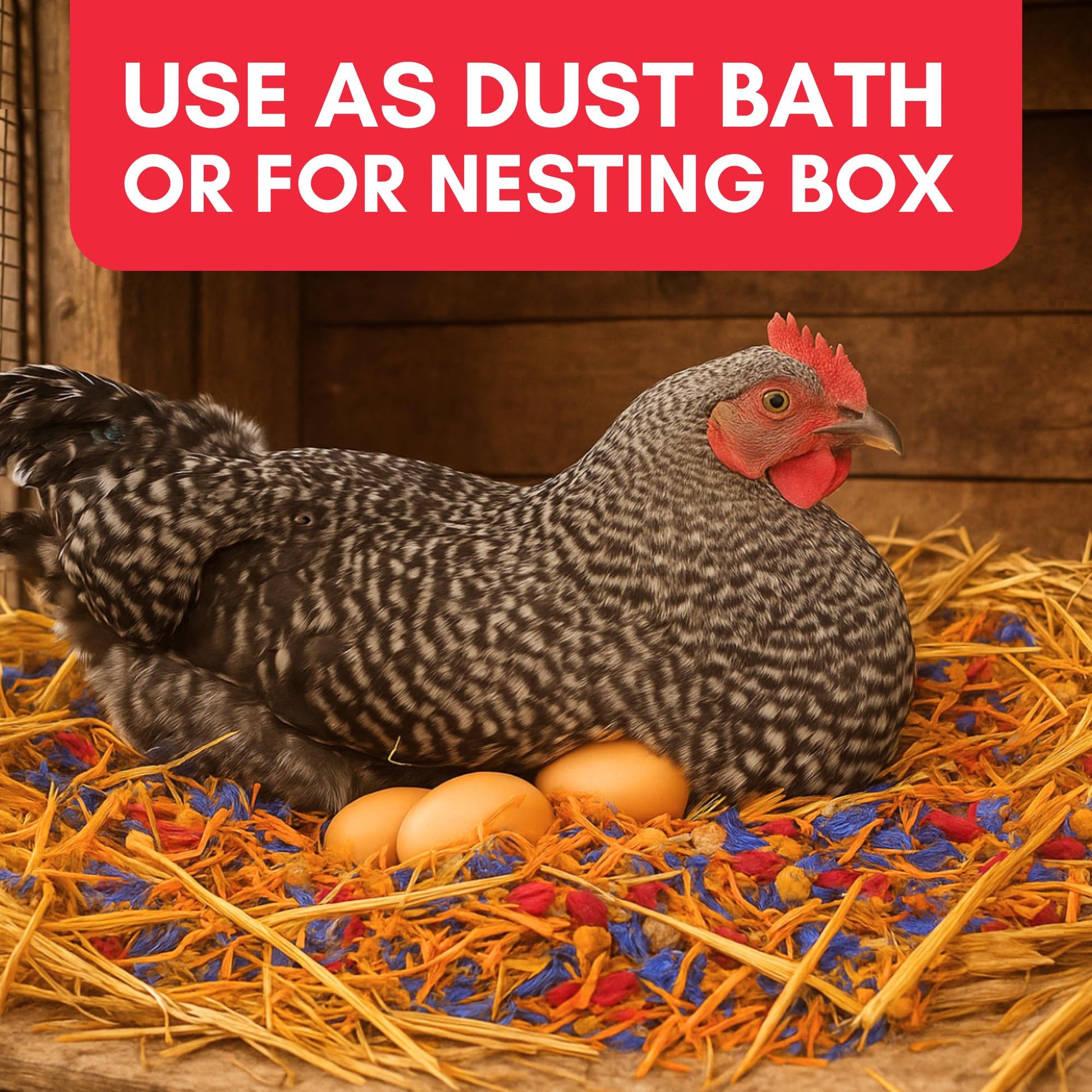 VERSATILE PROTECTION: Enhance the chicken coop experience with ease. Sprinkle a handful of our nesting herbs in chicken nesting pads, coop boxes, bedding, litter, and dust bath areas. These versatile coop refreshers for chickens can also be used in your home or office, adding a touch of freshness and charm to your surroundings or as a delightful addition to your house plants.
