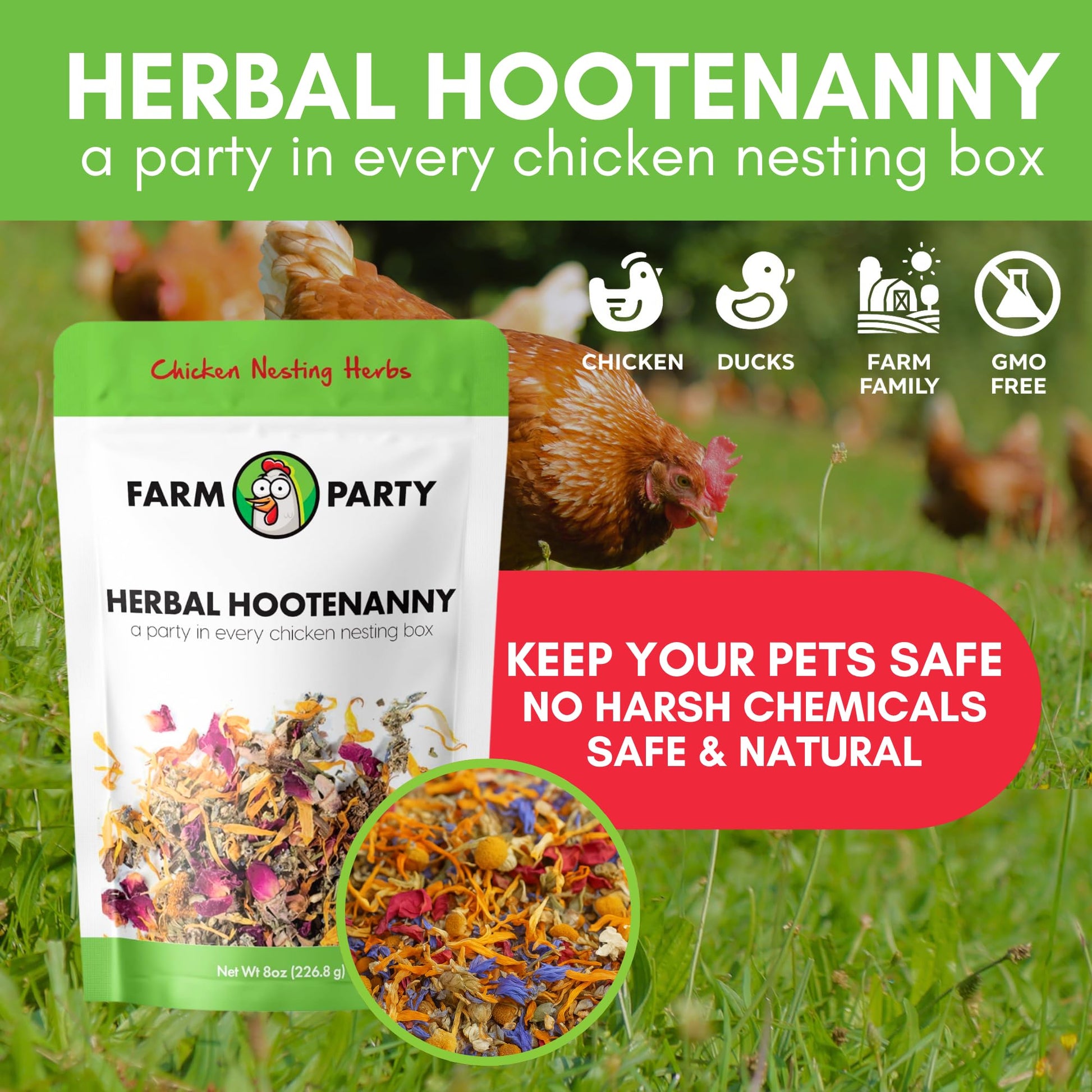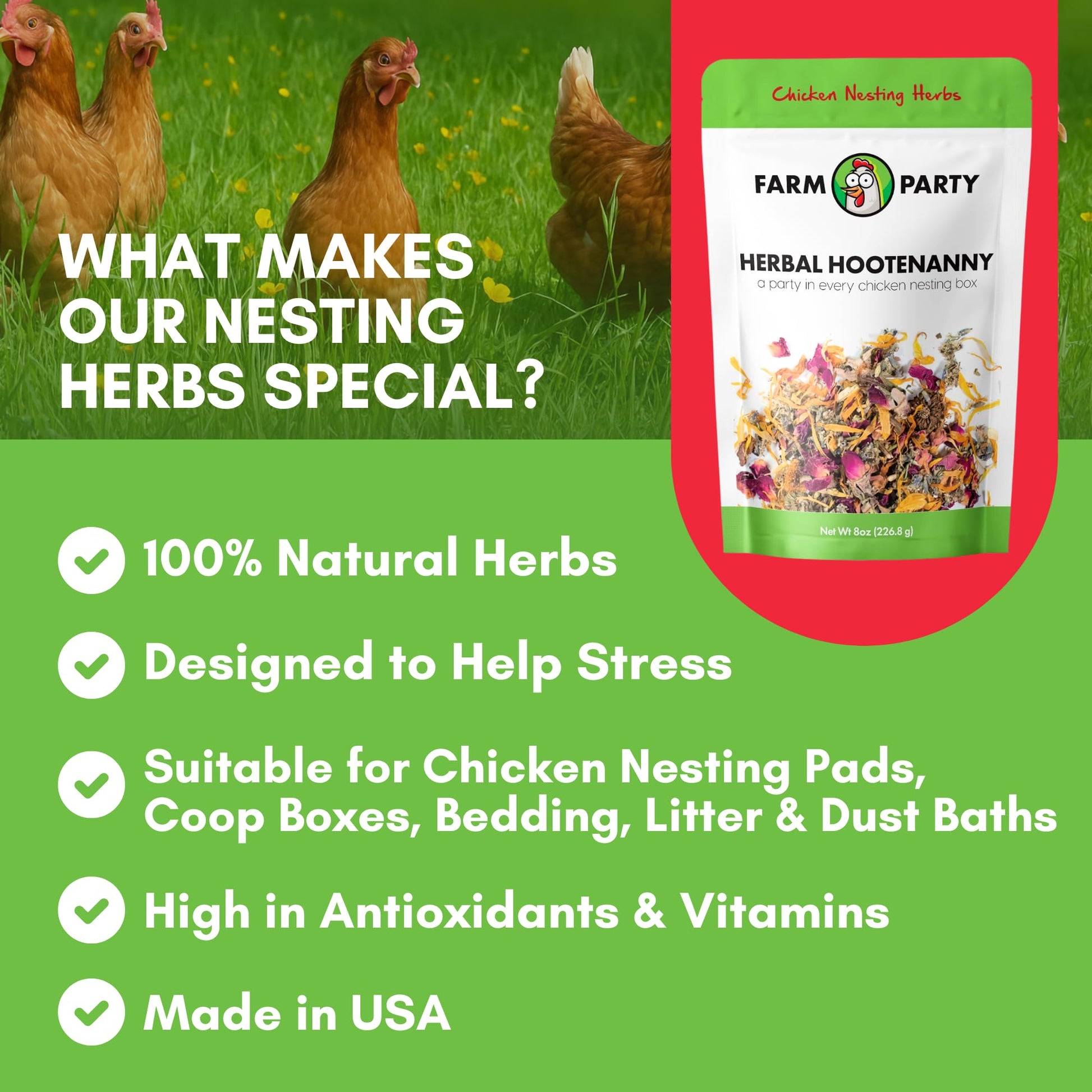 DELIGHTFUL HERBAL BLEND: Herbal Hootenanny dried nesting herbs for chickens are a premium blend of 100% natural herbs, carefully crafted to create a delightful botanical experience. Watch as your chickens go wild over our chicken coop deodorizer herbs, adding a touch of excitement to their coop.