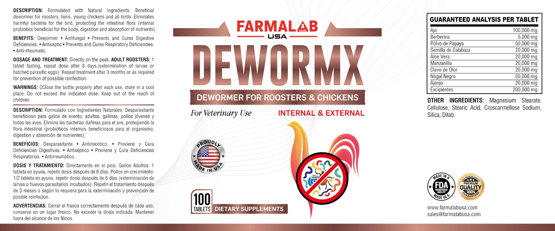 • Farmalab Natural Dewormer Internal & External 100 Tabs Poultry - Vitamin for Poultry Rooster Hen Chicken Baby Chick