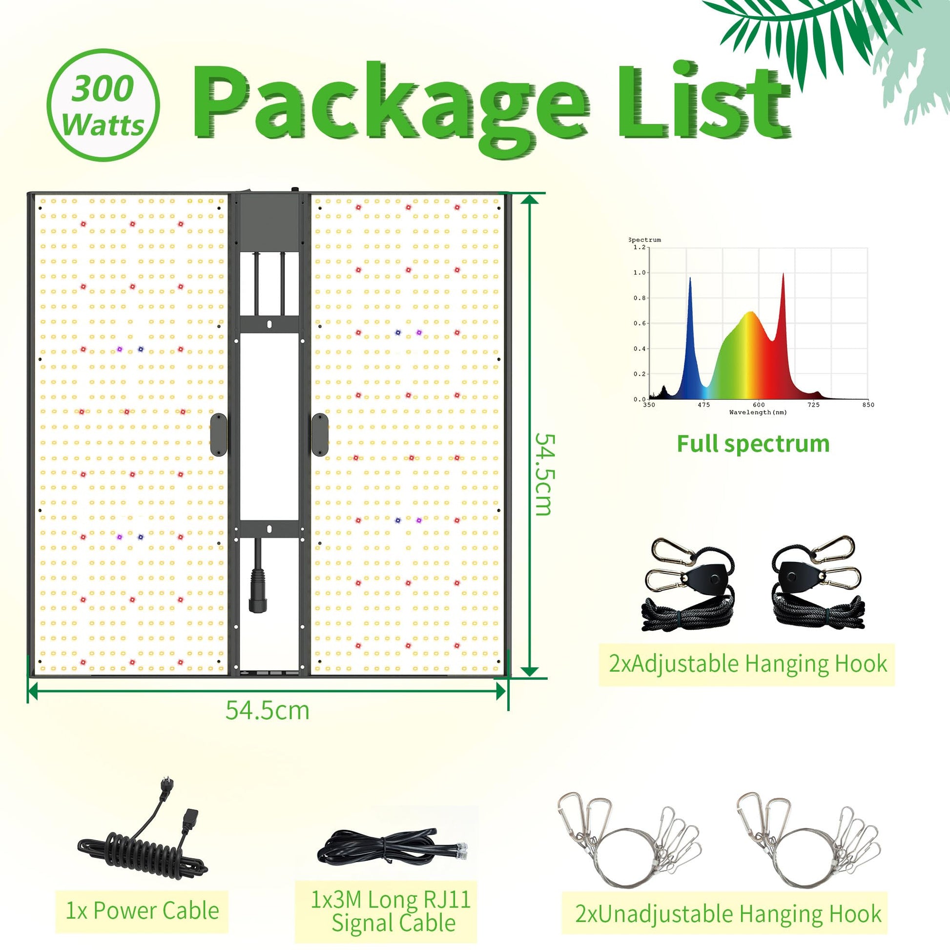 【What do you get?】1xLED Grow Light with Driver,1x3M Long RJ11 Signal Cable,2xAdjustable Hanging Kit,2xNon-Adjustable Hanging Kit.We provide 3 years warranty.