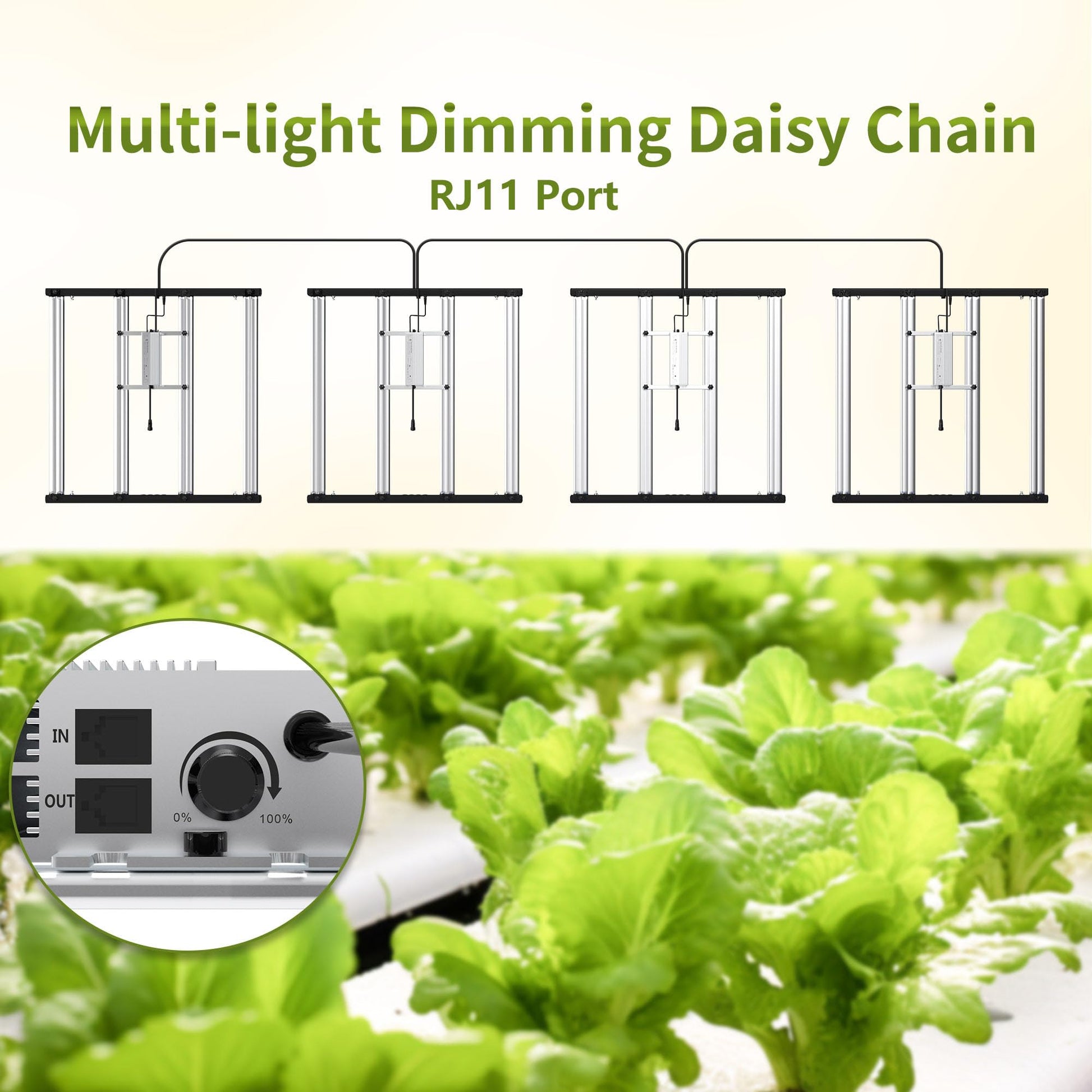 【Daisy-Chain Dimming】This grow light for indoor plant has a dimming button to adjust the light intensity required for different plant growth stages.The daisy-chain function allows you to connect up to 25 LED grow lamps and can be dimmed simultaneously.