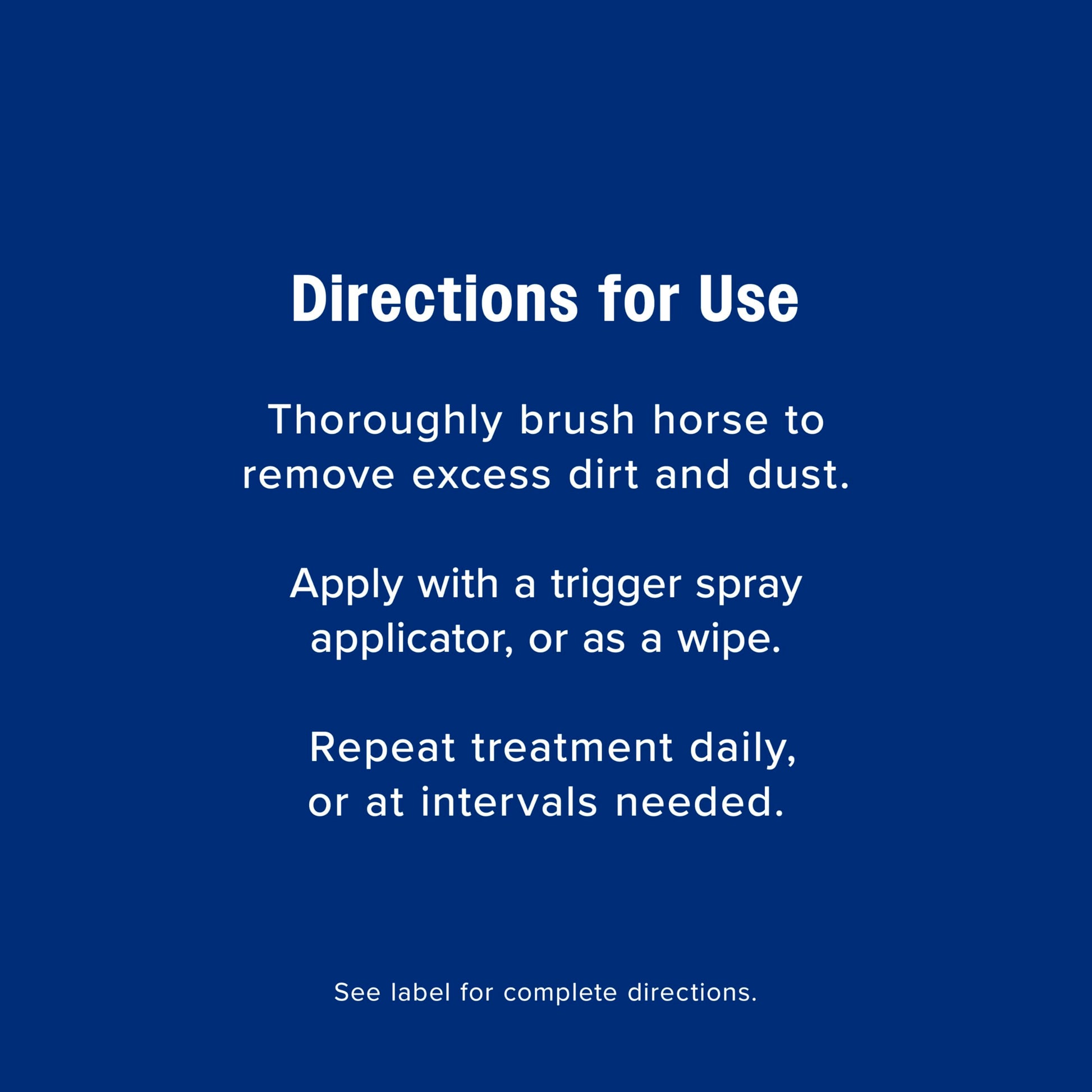 KILLS AND REPELS six common fly species (stable, horse, face, deer, house and horn), mosquitoes, gnats, ticks, fleas, chiggers and lice