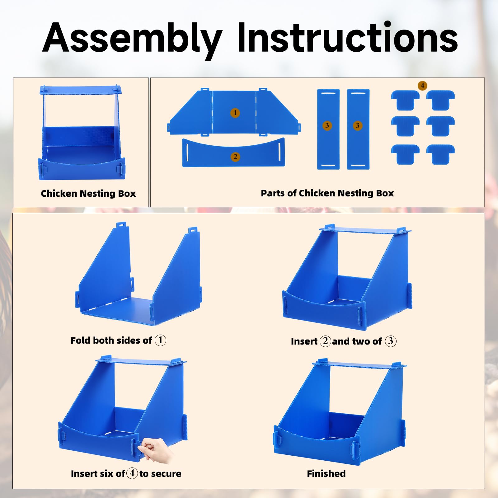 Easy installation: We understand the importance of simplicity when it comes to assembly. That's why our chicken nesting box comes with detailed instructions and pre-reserved hole positions, making installation a breeze. We even provide the necessary tools and installation instructions, allowing you to effortlessly set up the chicken coop box in just a few minutes.