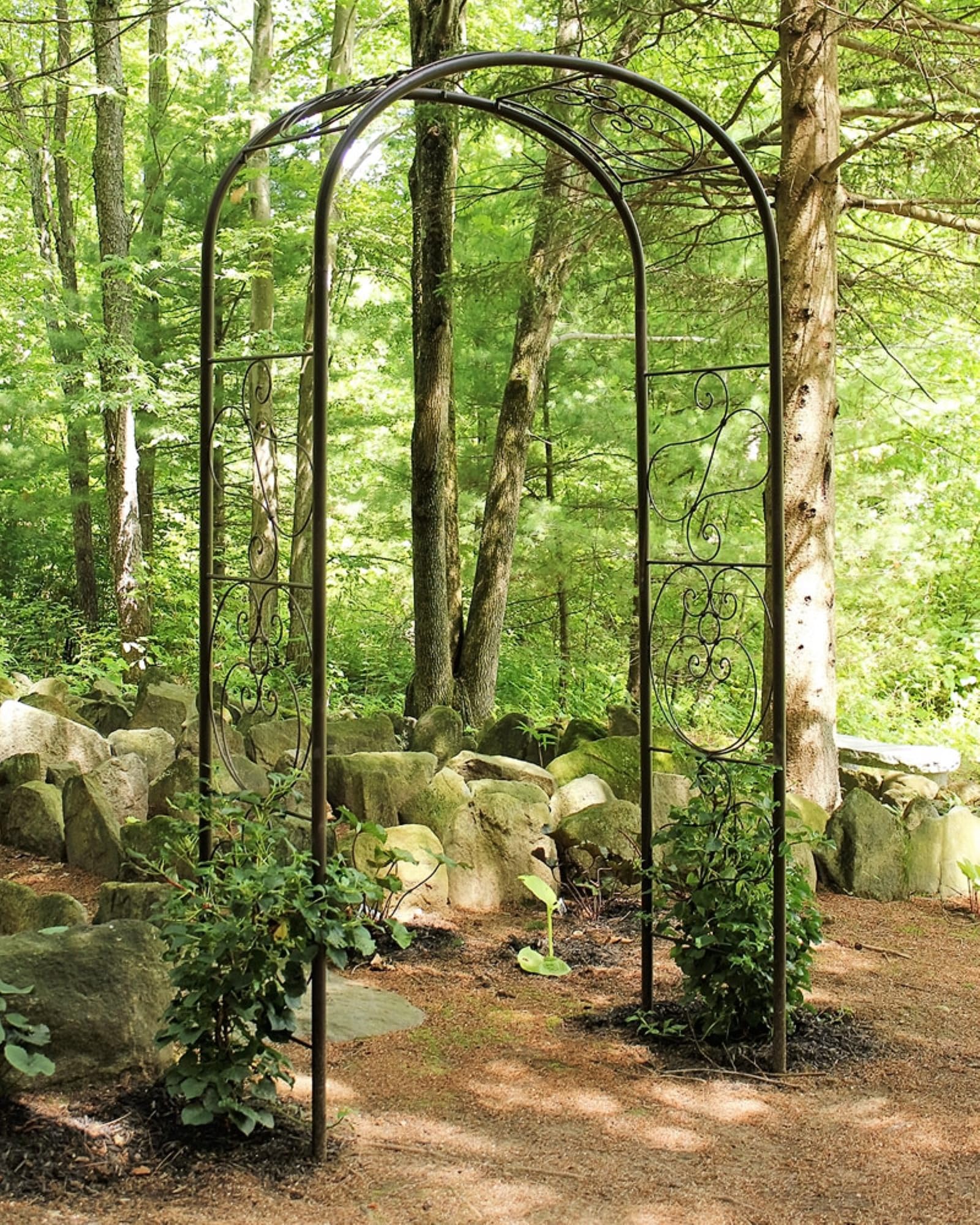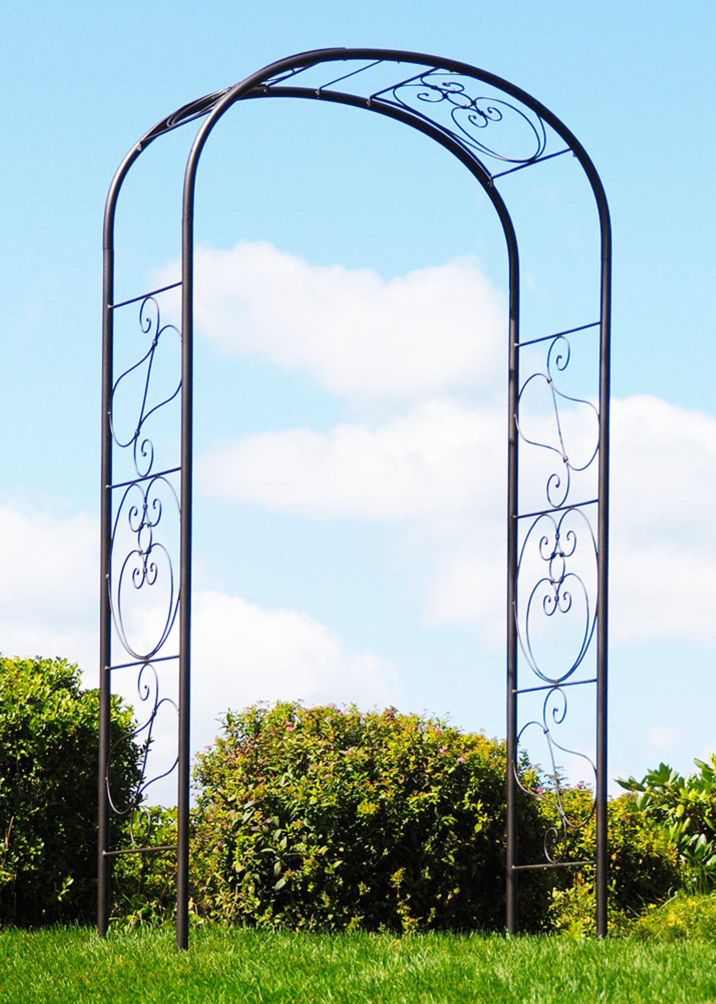 • Easy clearance at 99" tall, the Ferro Firenze Arbor stands tall enough to support climbing vines while providing ample room for passage beneath. These sturdy garden arches are ideal for placement over walkways and benches, even for weddings and events.