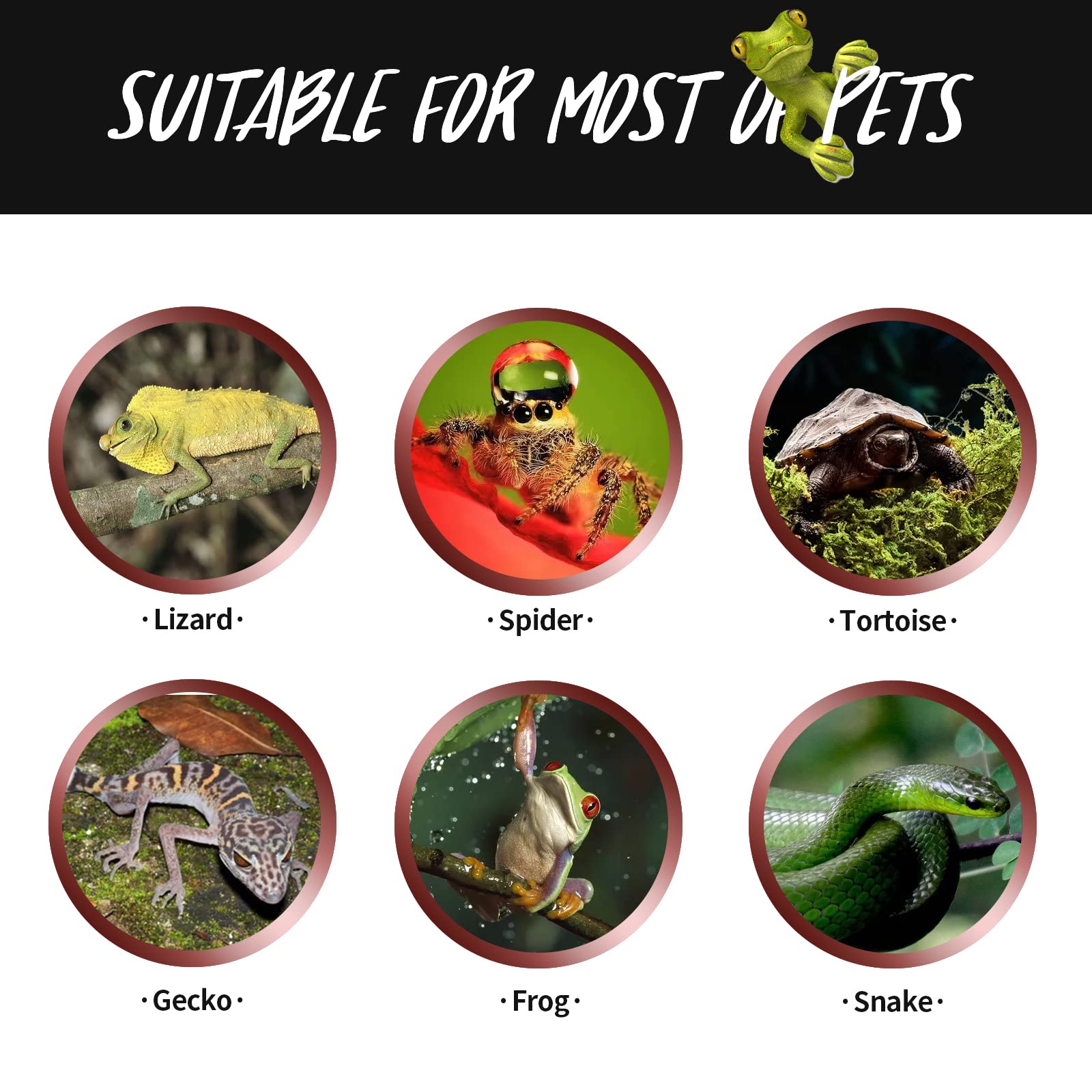 Perfect for a wide variety of reptiles and amphibians, including hermit crabs, bearded dragons, tortoises, turtles, geckos, snakes (pythons, boas, etc.)