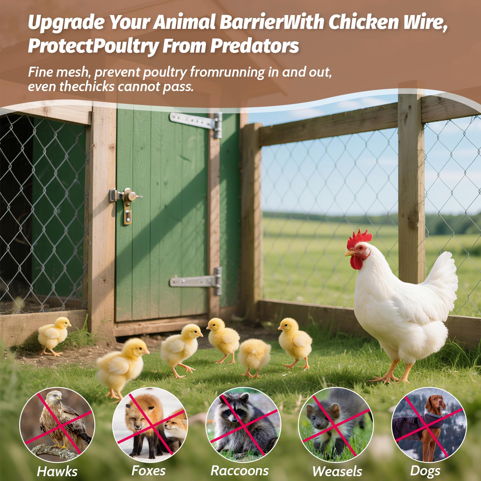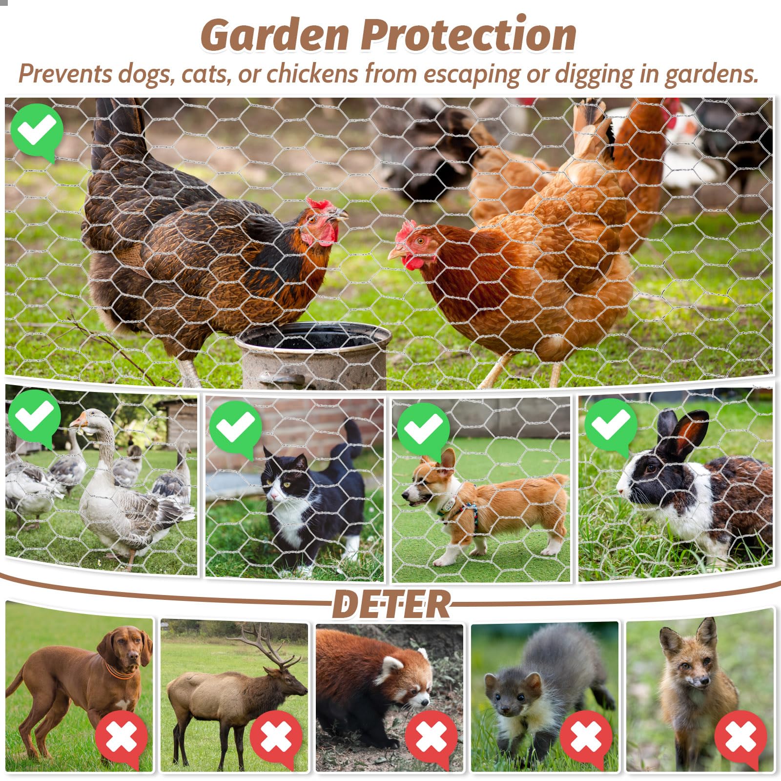 ✅Effective Garden Wire Fencing for Protection & Support: Use our poultry netting to shield your garden from small animals like rabbits, squirrels, raccoons, and foxes. This chicken wire fencing works excellently as garden wire fencing, helping you secure flower beds, vegetables, grape vines, and landscaping. The hexagonal design allows airflow and visibility while maintaining a strong barrier, which is ideal for creating garden fence solutions or supporting climbing plants.