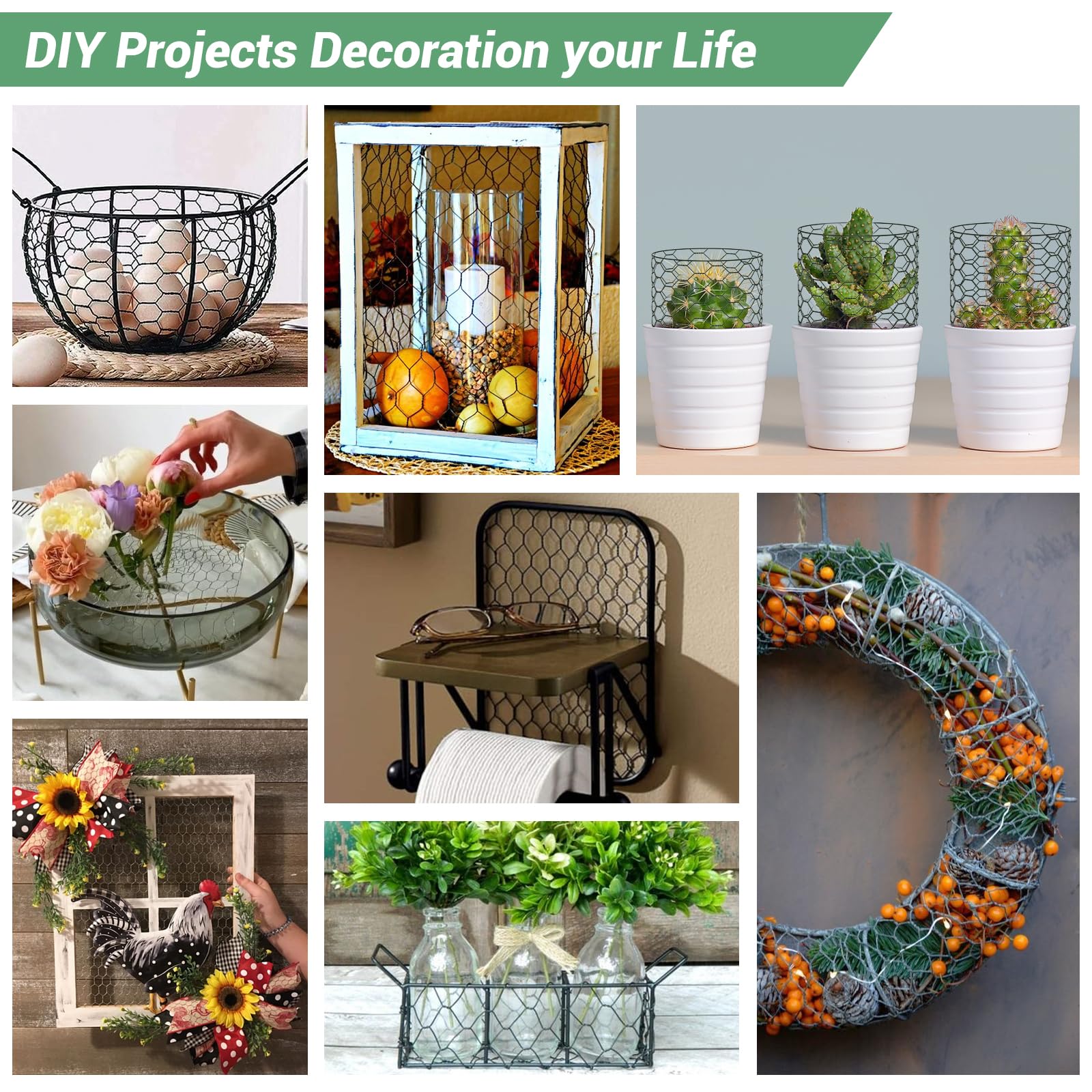 Craft for Floral Wire Fence: This galvanized wire mesh can create many home crafts that are sturdy and pliable, which allows you to DIY your home projects, like the safe cover of pet cages, Christmas wreath frames, cabinet door replacement, earring holders, photo walls, DIY floral decor, jar covers, etc. Unleash your creativity. You can cut and shape for any other small project.
