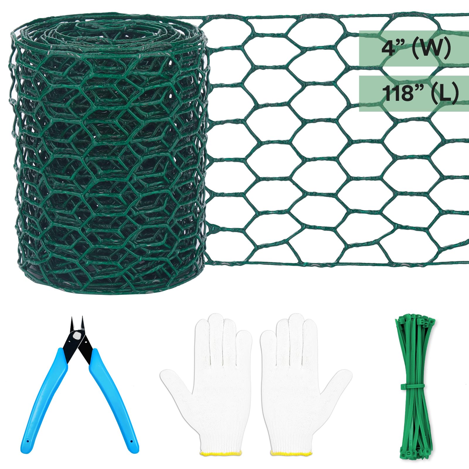 Chicken wire netting size: You will receive a roll of chicken wire mesh, which measures 4 inches W x 118 inches L (0.1 x 3 m). Wire thickness: 2mm, Suitable for DIY craftwork. The floral chicken wire package includes a cutting plier a pair of gloves and 50 wire ties. These netting grids are uniform and good-looking.