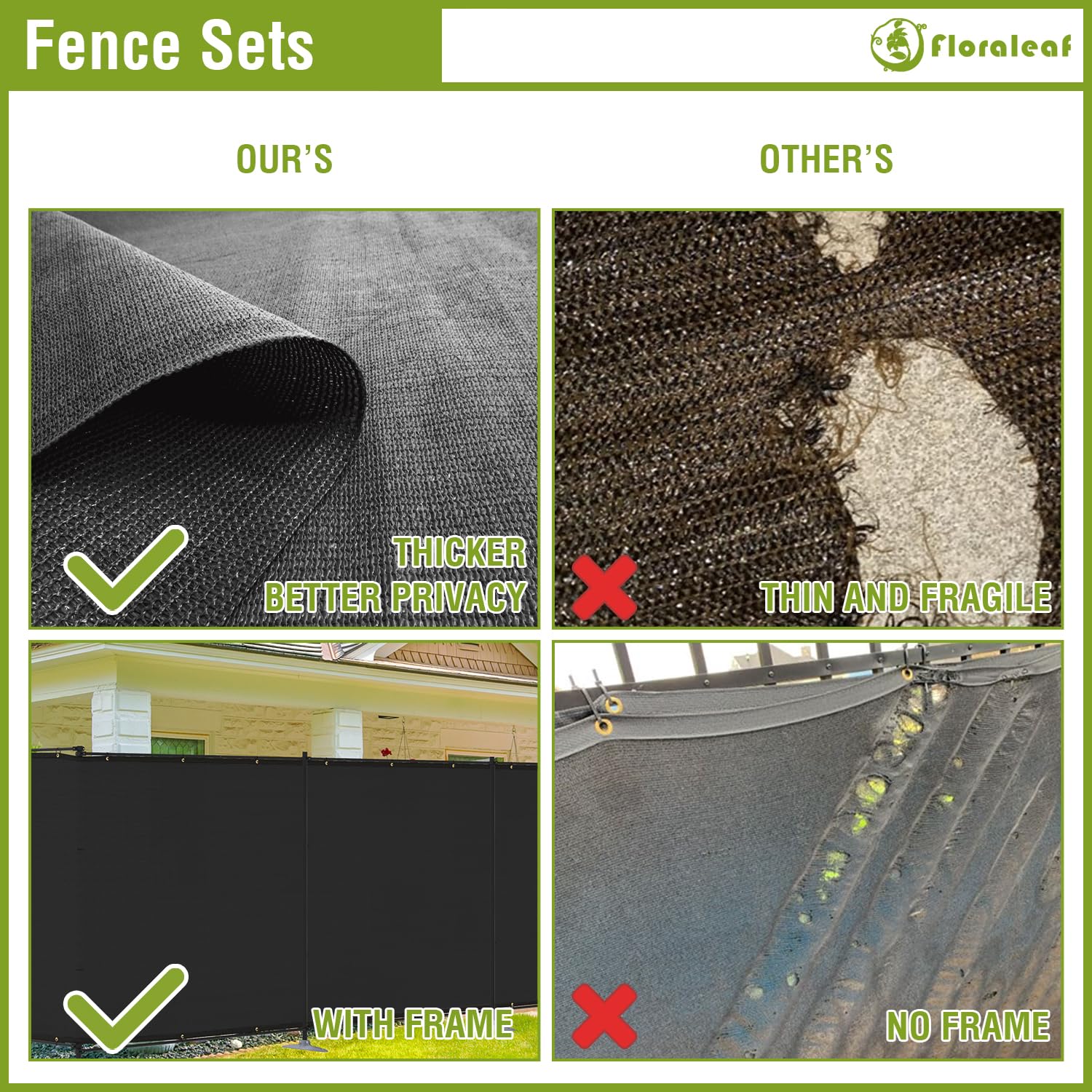 Our outdoor fence kits, available for both hard and soft ground installations, come with sturdy backing plates and spikes for better fence protection in high winds and reinforced material for better strength and durability.