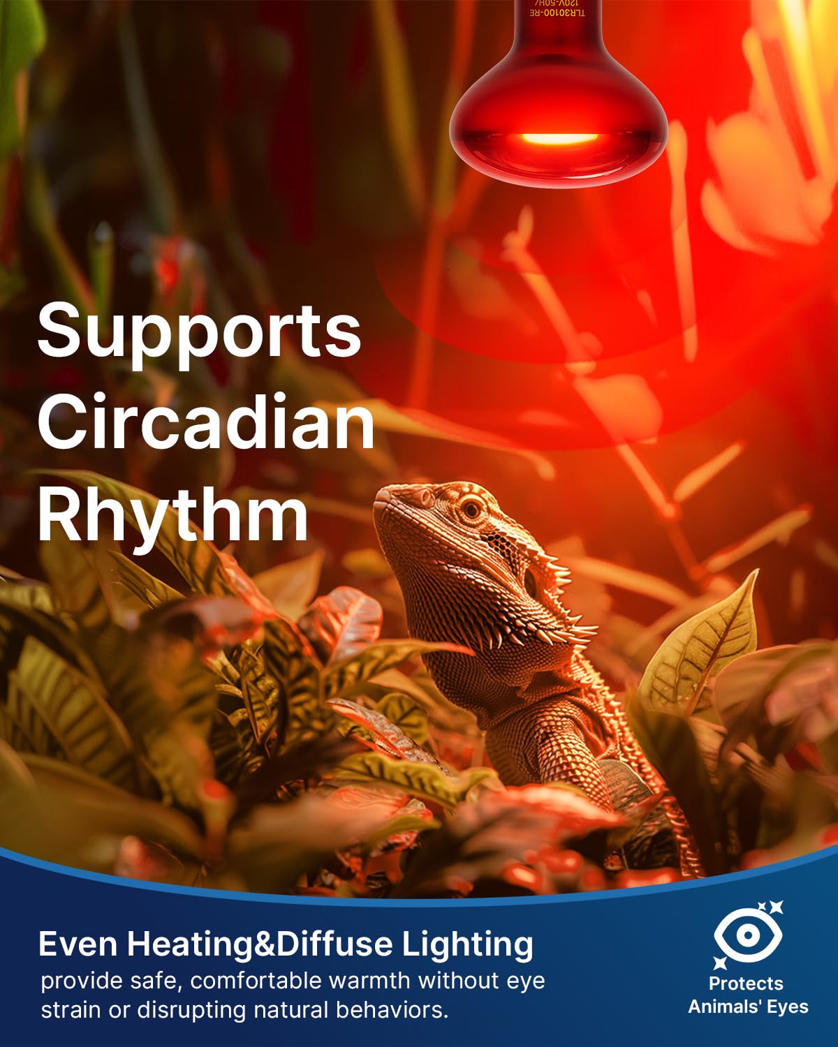 Safe & Effective Heating: The red heating light bulb can provide sufficient heat to your reptiles 24/7, allowing your pets to regulate their body temperature or maintain a healthy level of body temperature without interfering with their daily lives, ensuring that reptiles maintain appropriate heating at night