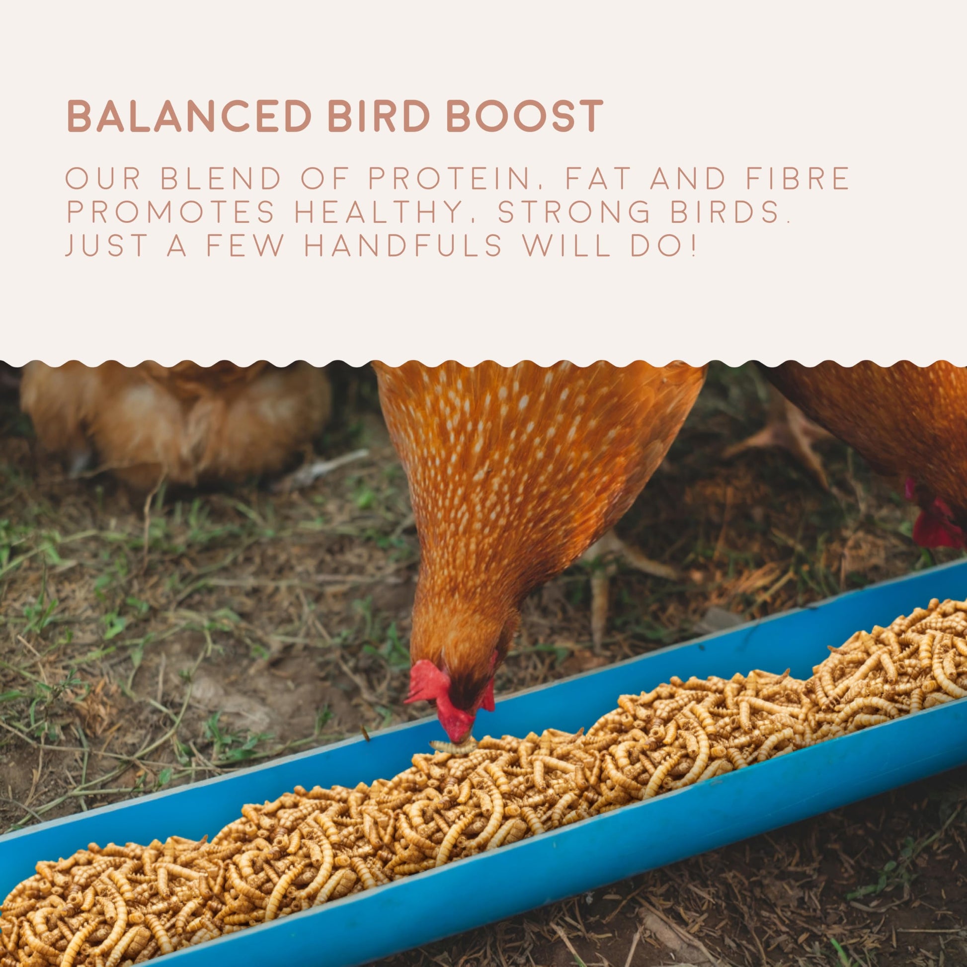 MORE NUTRIENTS THAN MEALWORM: Elevate your chickens' diet with 85x more calcium than traditional mealworms. Loaded with 36-42% protein, 25-30% healthy fat, along with phosphorus, fiber, and lysine.