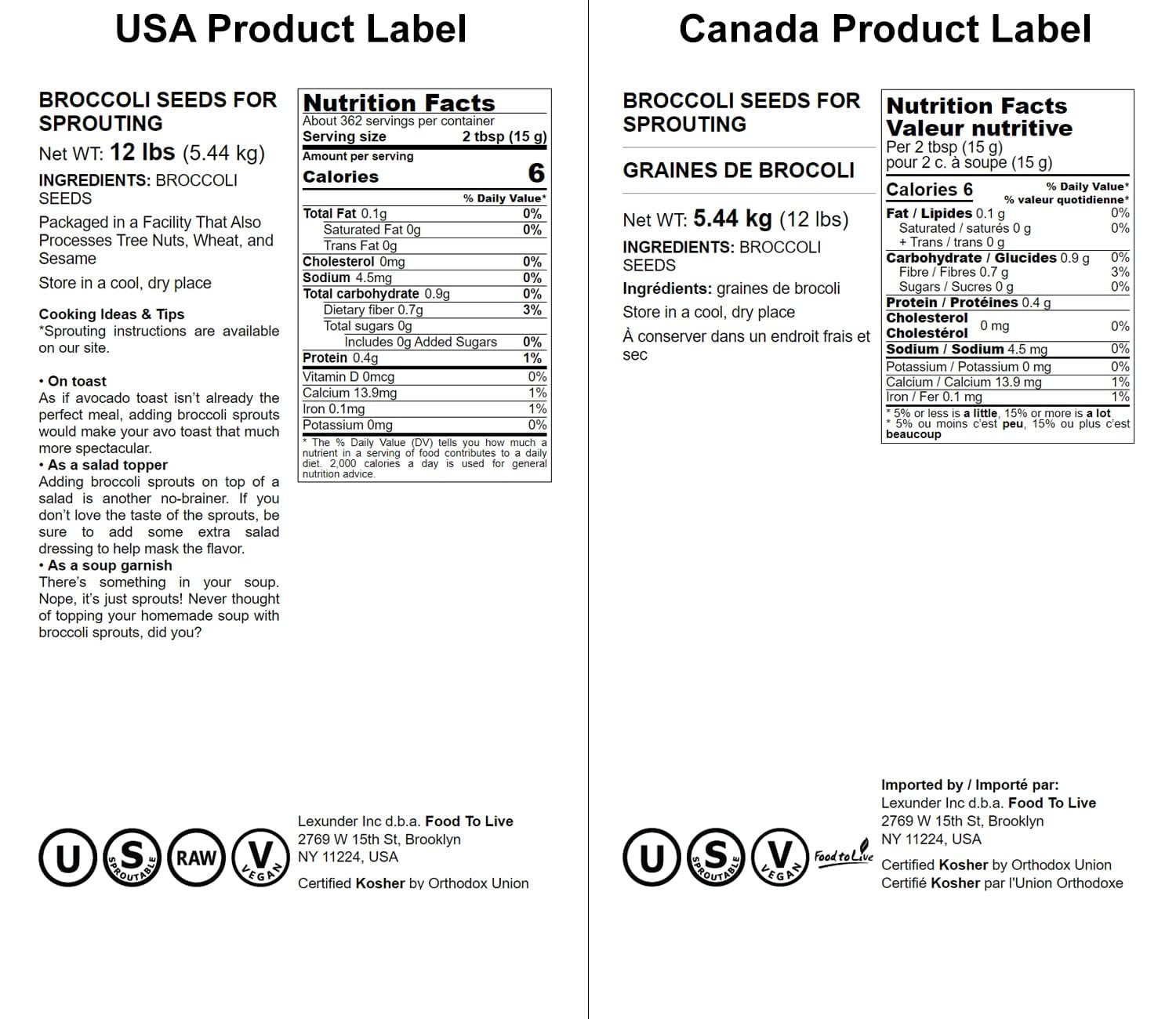 Food to Live Broccoli Seeds for Sprouting, 12 Pounds – Vegan, Kosher, Sirtfood, Bulk. Rich in Sulforaphane, Vitamin C, Vitamin A. Great for Growing Sprouts, Microgreens. High Germination Rate