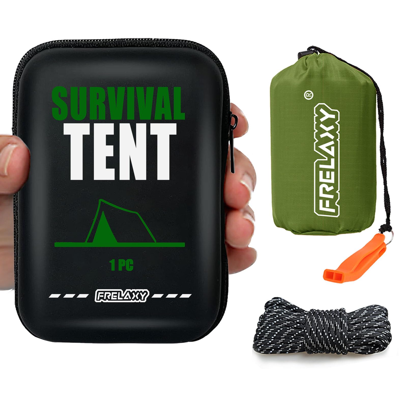 Frelaxy Extra-Thick Emergency Tent, Compact Survival Tent with Whistle, Upgraded Paracord, Storage Pouch, and EVA Case, 2 Person Emergency Shelter for Backpacking, Hiking (Army Green - 1 Pack)