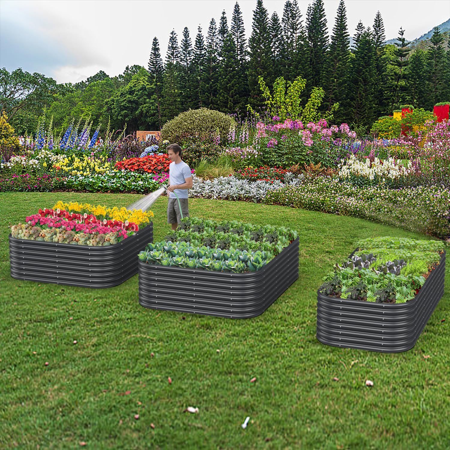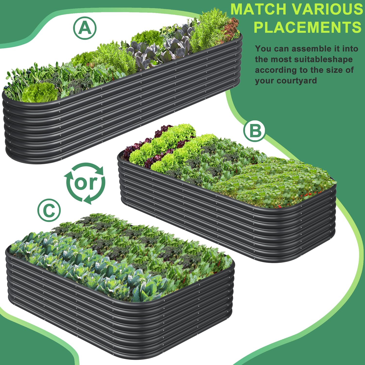 FRIZIONE 12FT(L)×2FT(W)×2FT(H) Raised Garden Bed Outdoor, 12 in 1 Adjustable Raised Garden Beds for Flower, Raised Planter Box Outdoor for Herb, Vegetable-Gray