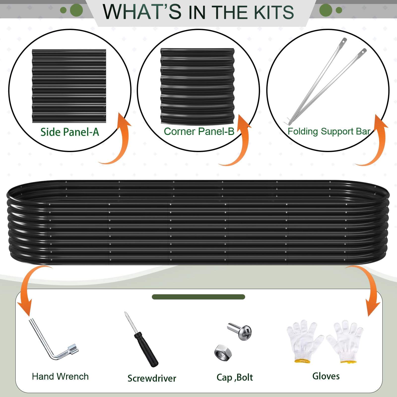 【Perfect Planting Choice】: This metal raised garden bed is bottomless designed, making the roots of plants can extend freely and allows excess moisture to easily drain away. It is ideal for plant vegetables, herbs, plants, succulents and flowers.