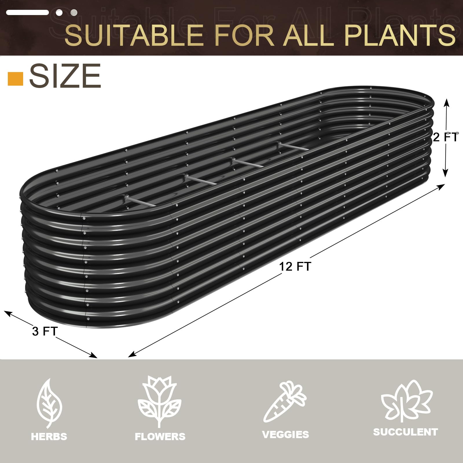 FRIZIONE 12FT(L)×3FT(W)×2FT(H) Galvanized Raised Garden Bed Outdoor, Metal Raised Garden Beds for Flower, Raised Planter Box Outdoor for Herb, Vegetable-Gray