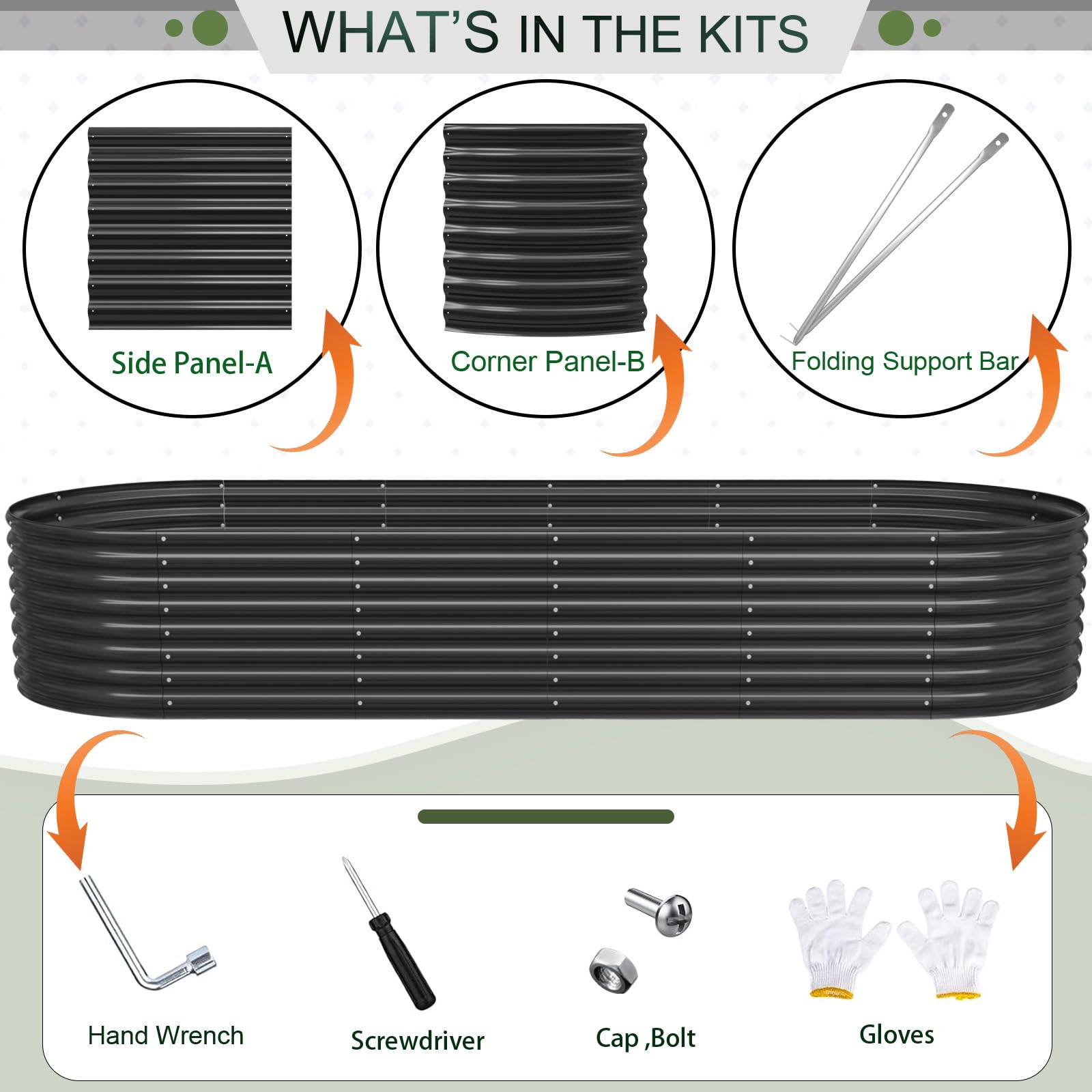 【Perfect Planting Choice】: This metal raised garden bed is bottomless designed, making the roots of plants can extend freely and allows excess moisture to easily drain away. It is ideal for plant vegetables, herbs, plants, succulents and flowers.