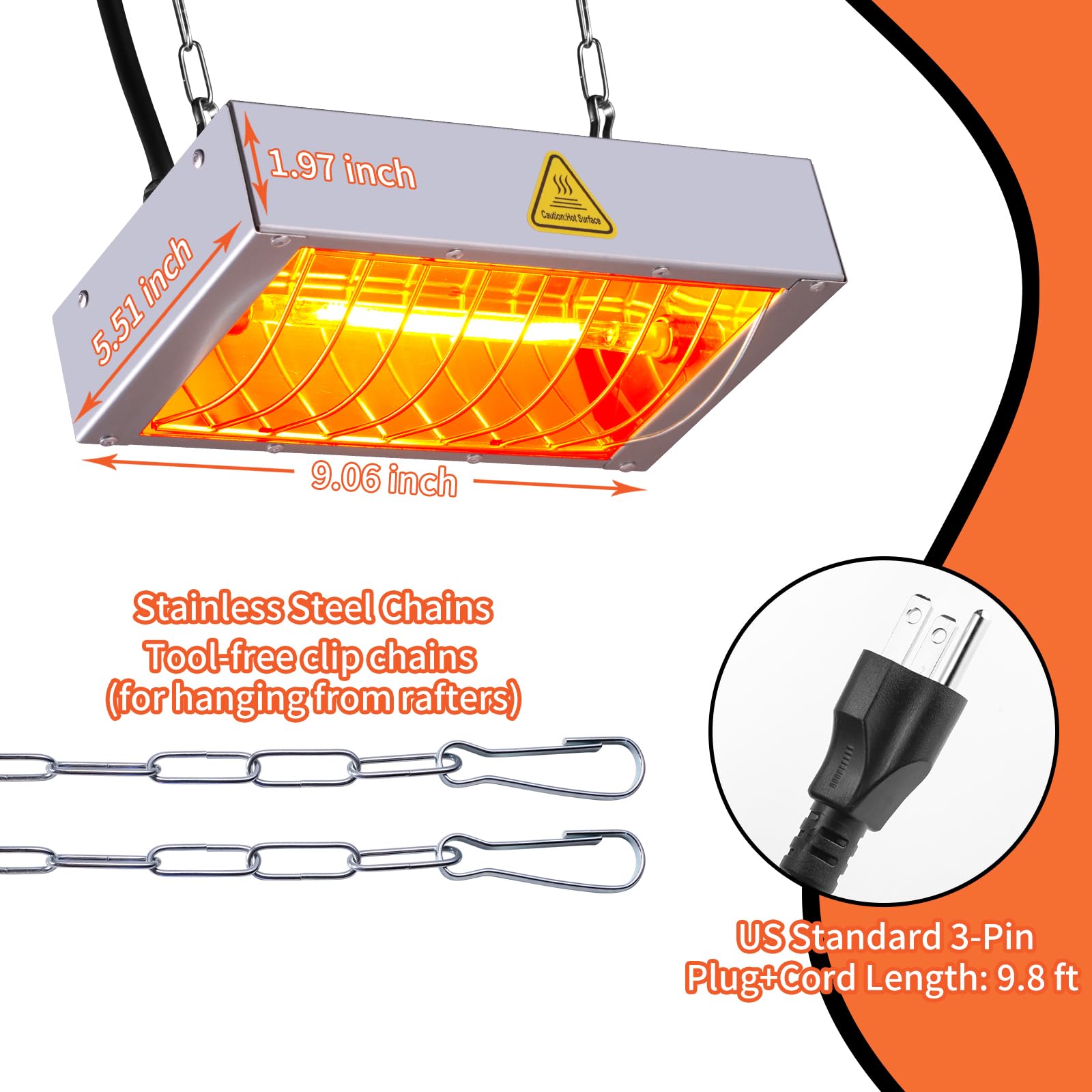 Effortless Setup… Straight from Box to Barn - No complicated instructions, no extra parts. Just take it out, hang it with the attached chain, and adjust the height to perfect your temperature. It’s that simple. Now you can focus on what really matters—enjoying the sight of your animals growing up warm and well-cared for.