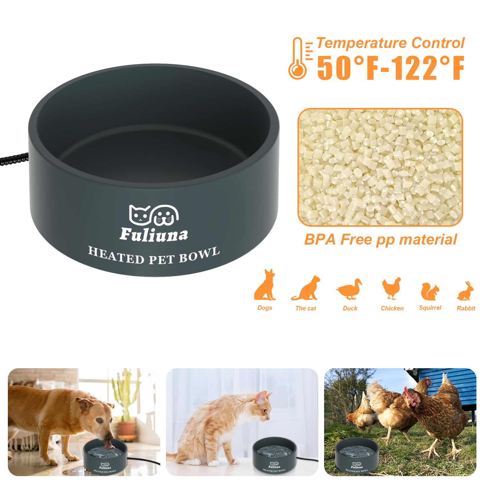 Suitable for Many Pets: The heated pet water bowl can be used outdoor in winter, and available for dog, cat, rabbit, chicken, duck, squirrel to provide drinkable water. We recommend placing it in a sheltered area to avoid wind damage, do not immerse the pet's thermal bowl in water, and unplug when there is no water in the bowl.