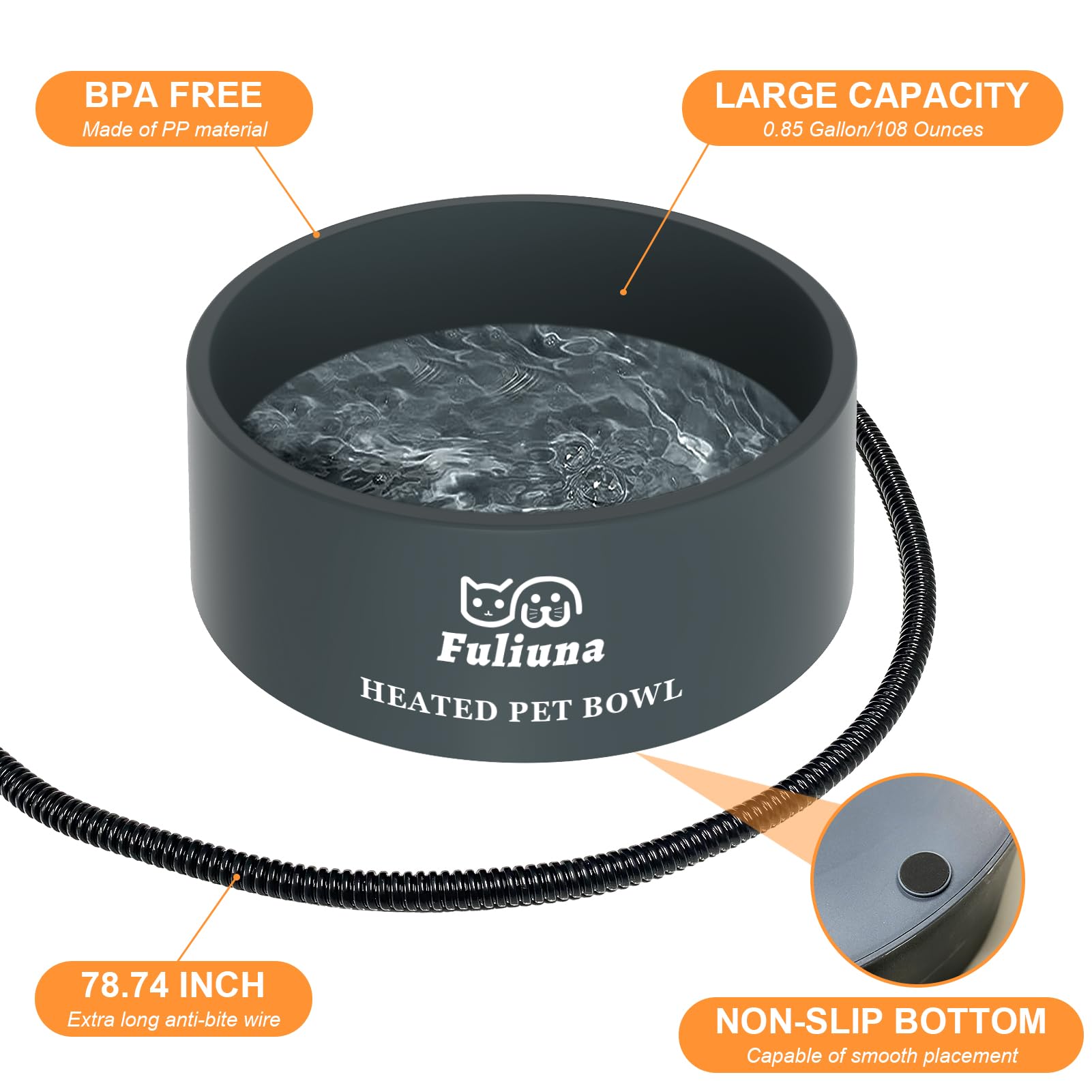Fuliuna Large Heated Water Bowl, Outdoor Heated Dog Bowl with Chew Resistant Power Cord, Thermal Bowl Provide Drinkable Water in Winter, Heated Pet Bowl for Cat Rabbit Chicken Duck Squirrel 0.85 Gal